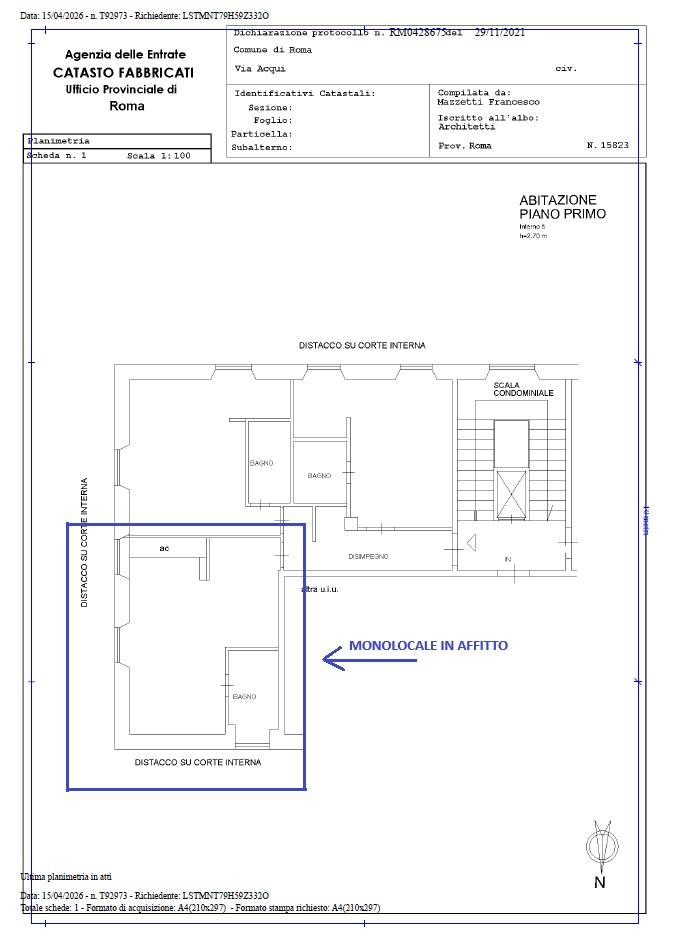 Il monolocale risulta in perfetto stato di conservazione e viene affittato gi arredato; ideale per professionisti o single, posto al primo piano con ascensore di una palazzina in ottimo stato.