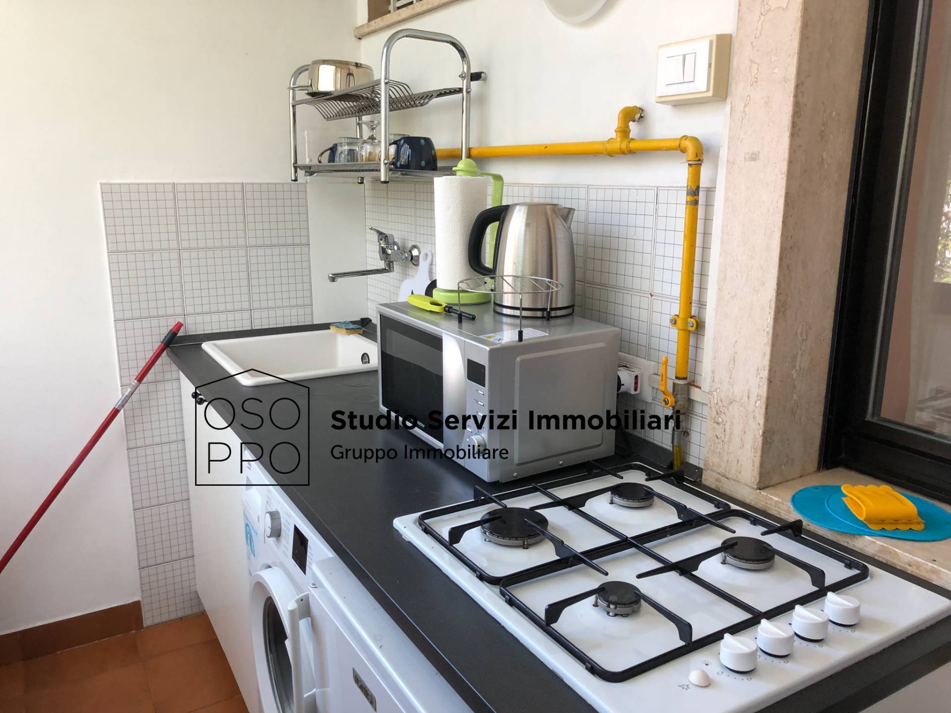 Open Space appena rinnovato con cucina a vista separata in veranda, completa e attrezzata di ogni accessorio, fornello 4 fuochi, forno elettrico, frigorifero, forno microonde, lavatrice, ecc. La posizione strategica a due passi dal centro storico di Udine e dalle principali sedi del trasporto pubblico cittadino fa di questo appartamento un comodo punto di appoggio per chi vuole godere della citt sia per turismo che per business.