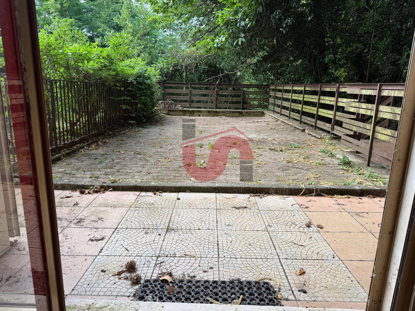 Una vetrata in legno e alluminio, con zanzariera, collega la zona living ad ampio terrazzo/giardino a livello di circa 30mq arricchito da vegetazione variegata.