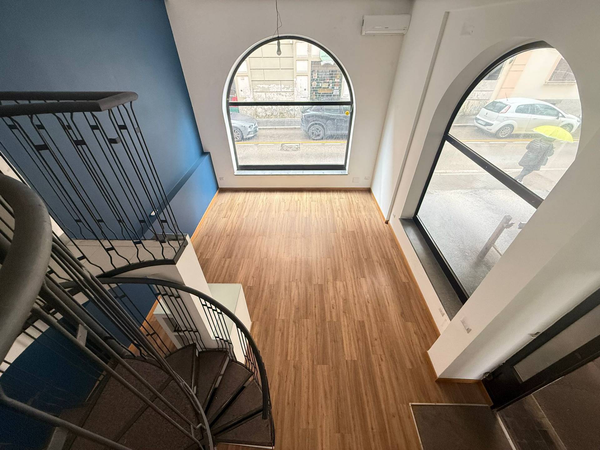 composto da un unico vano open space, luminoso e versatile, con piccolo soppalco e servizio igienico.
