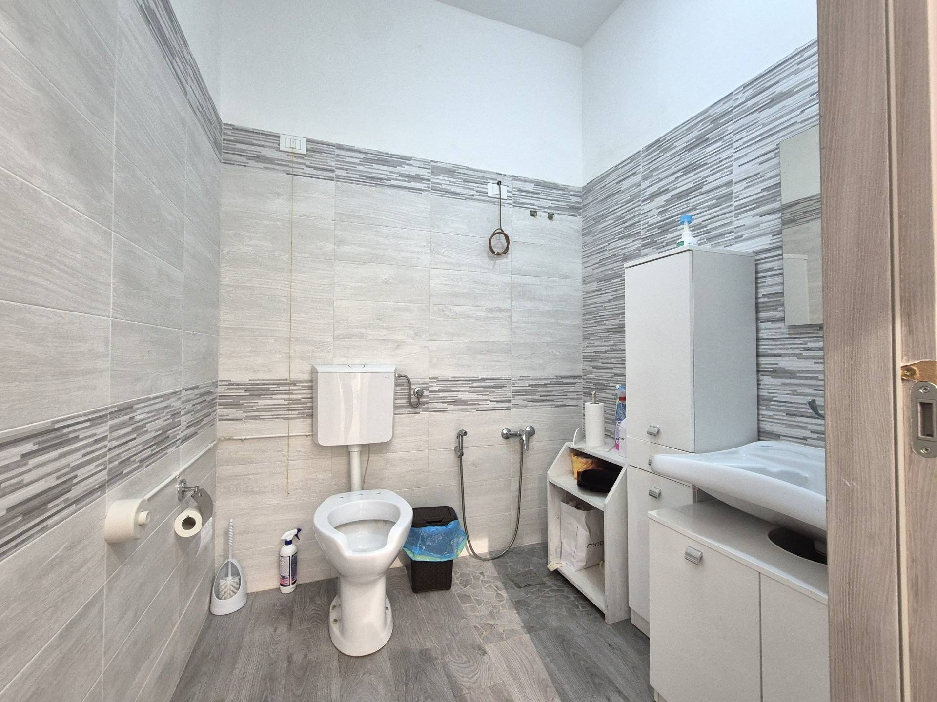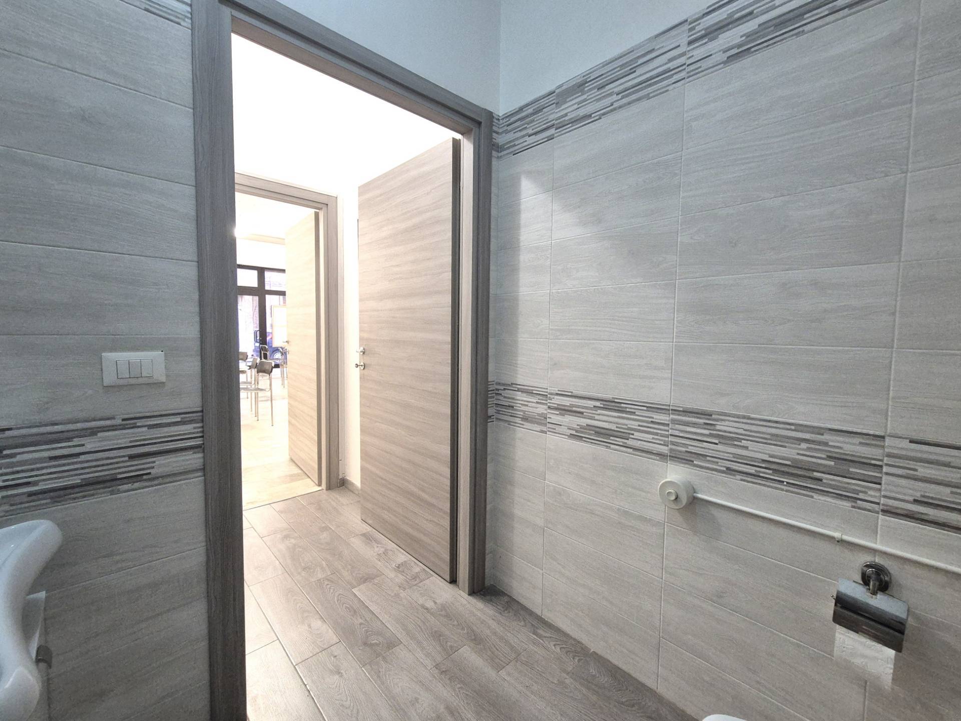 All'interno composto da due vani con altezza mt. 3,80 e doppi servizi con antibagno.