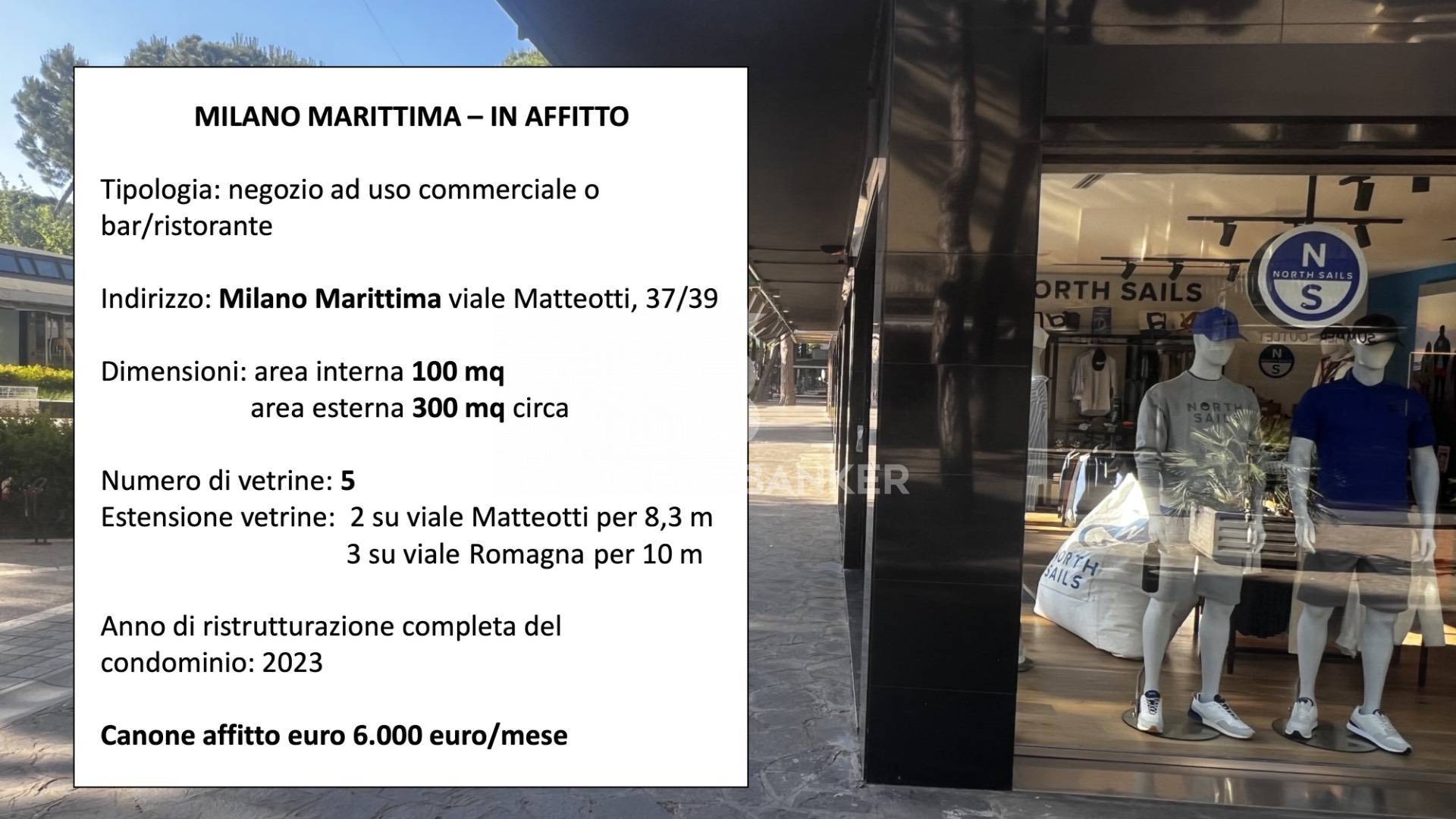 Locale di Prestigio con Ampia Area Esterna Milano Marittima Nel cuore esclusivo di Milano Marittima, tra Viale Romagna e Viale Matteotti, proponiamo in affitto un locale open space di rappresentanza, ideale per brand di lusso, boutique, ristorazione di alto livello o lounge bar esclusivo.