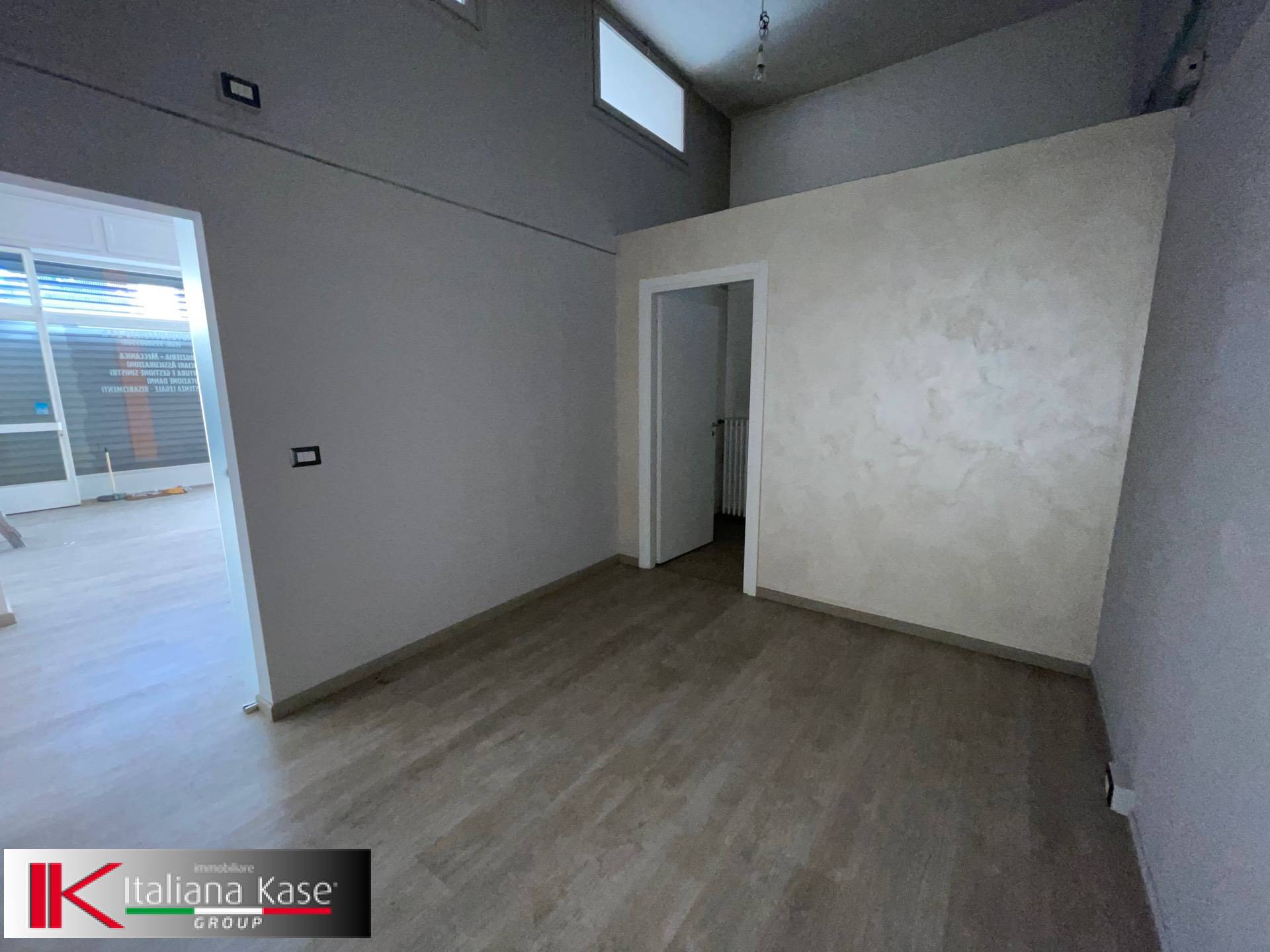 La soluzione sita al piano terra si compone di ingresso sul primo ampio locale open space, un secondo locale pi piccolo sul retro e bagno con antibagno.
