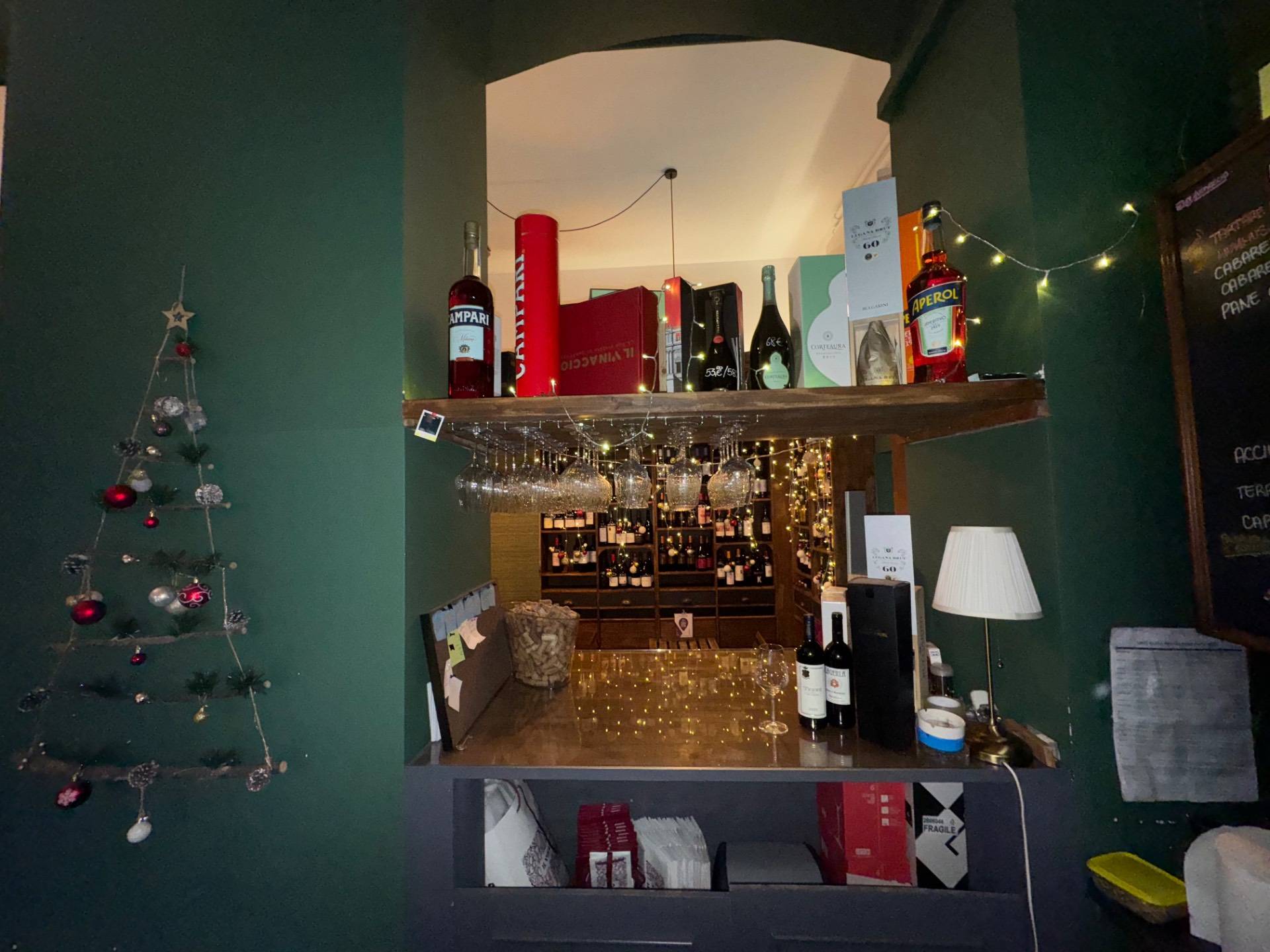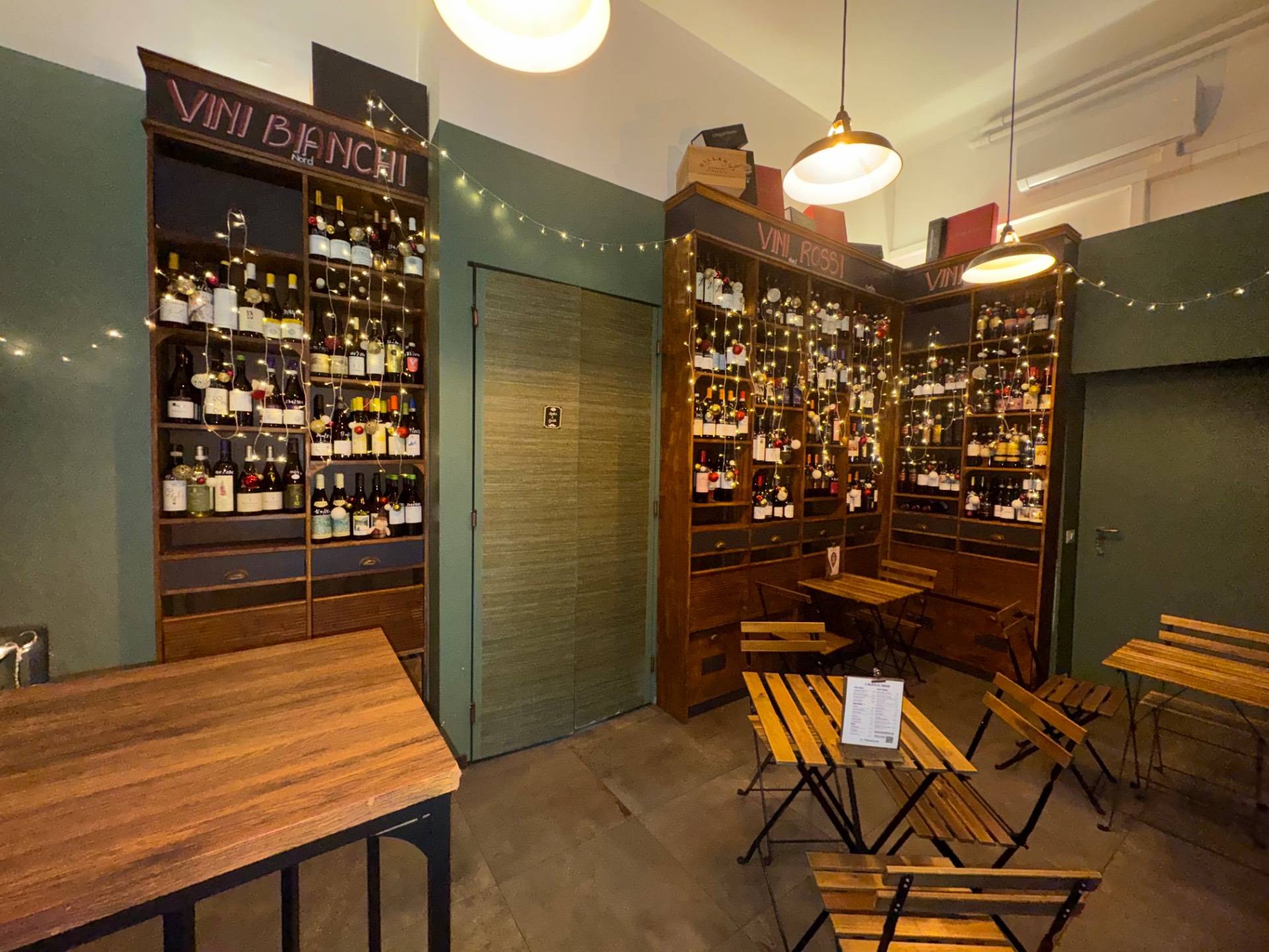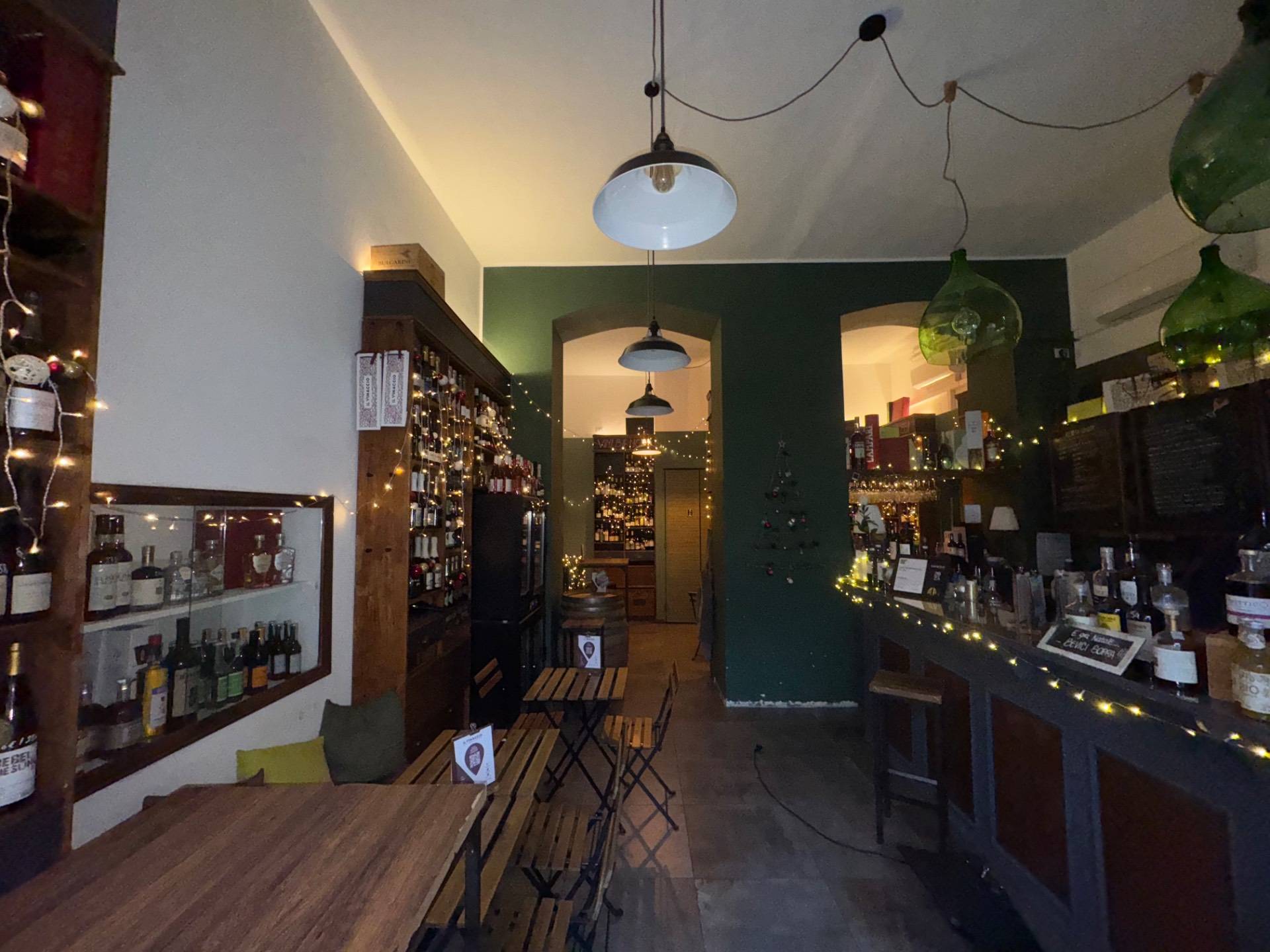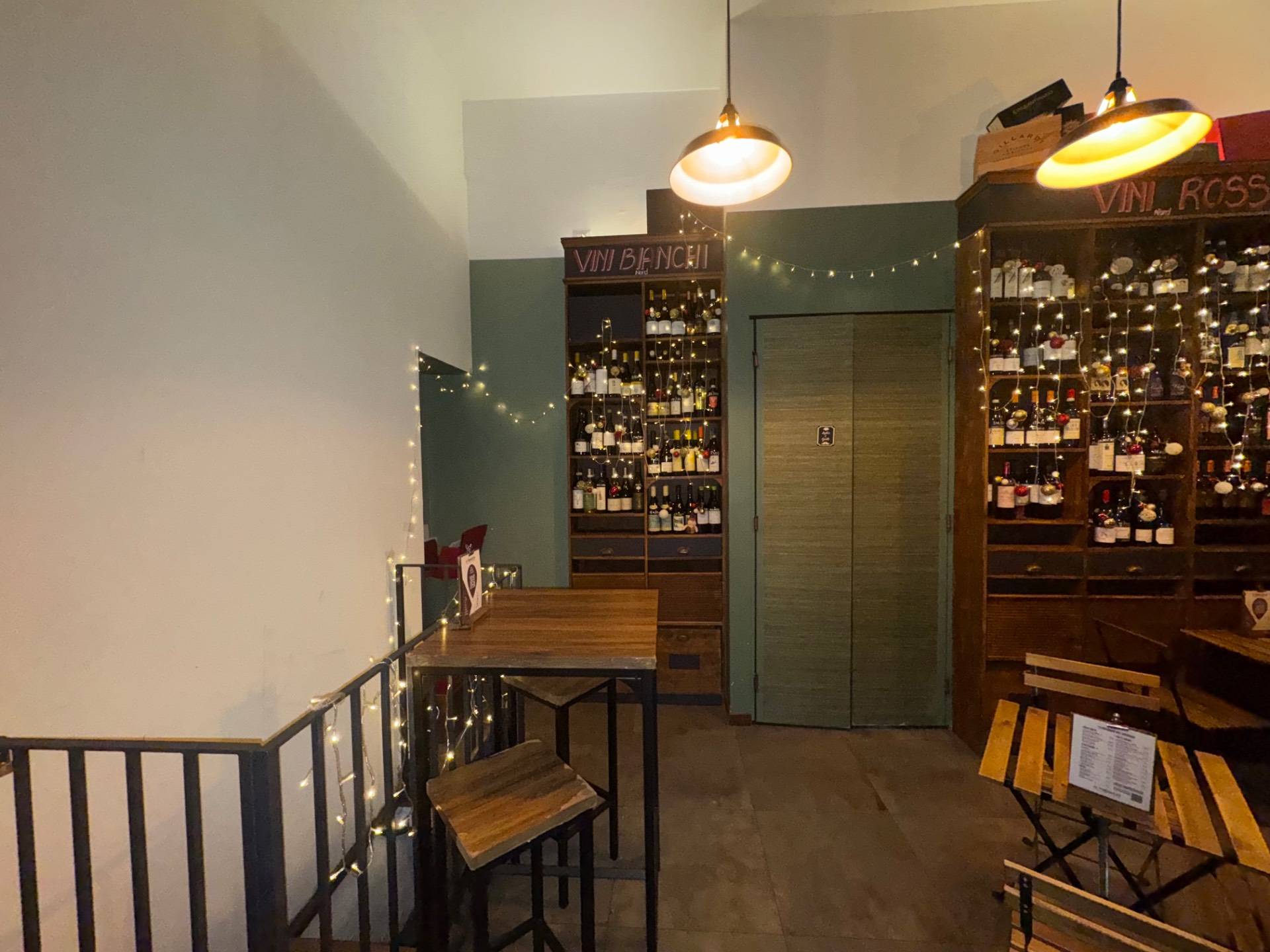 La soluzione adibita ad attivit di enoteca/wine bar ed cos distribuita, ingresso su area somministrazione food-beverage, bancone bar a vista, attiguo servizio a norma di legge per i clienti ed annessa area spogliatoio/servizio per il personale dipendente.