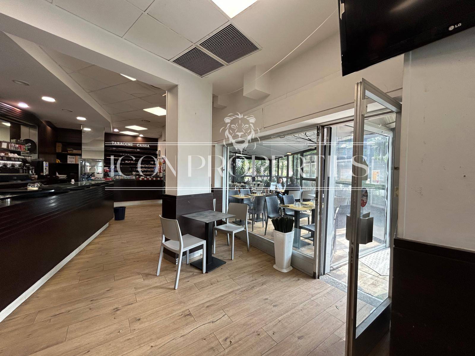Dehors verandato di circa 60 mq. adiacente alle vetrine, di propriet condominiale, per un costo di circa ? 10.000,00 all'anno. Possibilit di ulteriore Dehors esterno sul suolo pubblico.