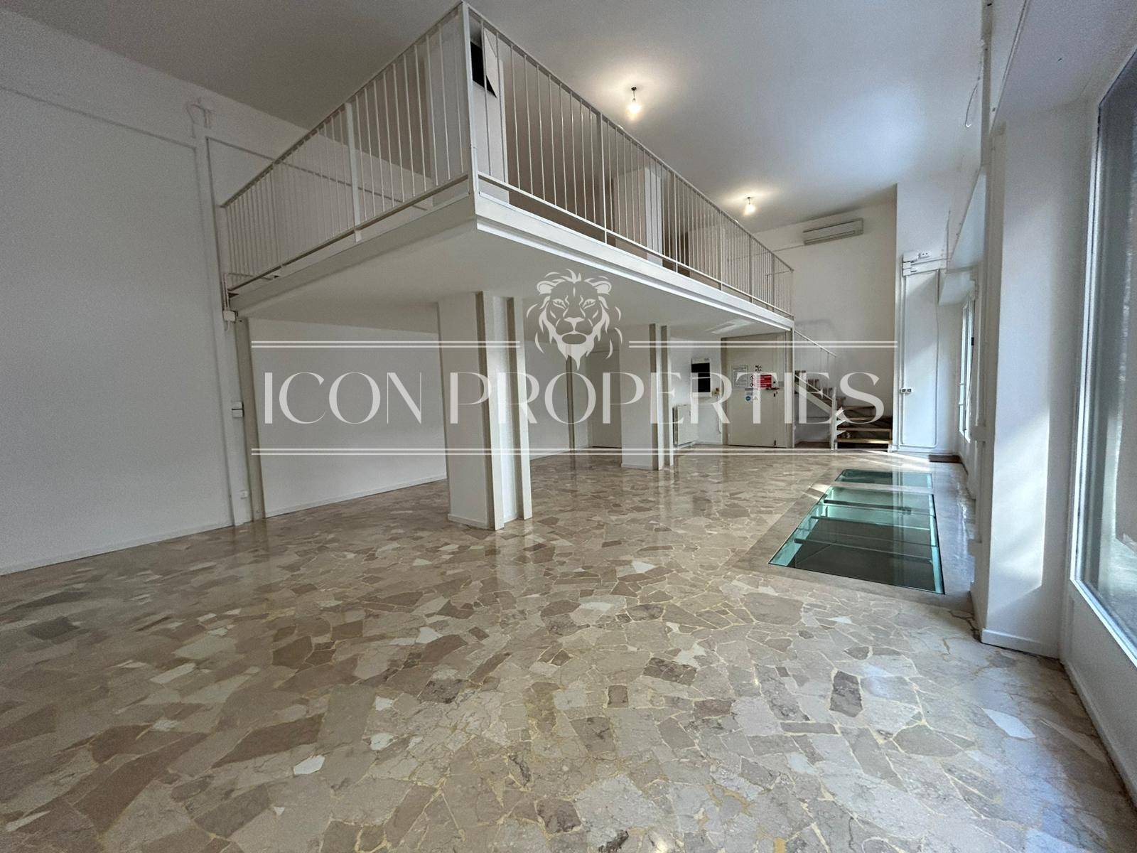 Negozio di 92 mq, pavimenti in marmo e gres, soppalco 35 mq, tre ampie vetrine, sottonegozio di 60 mq, annesso ufficio di 26 mq con due locali e bagno.