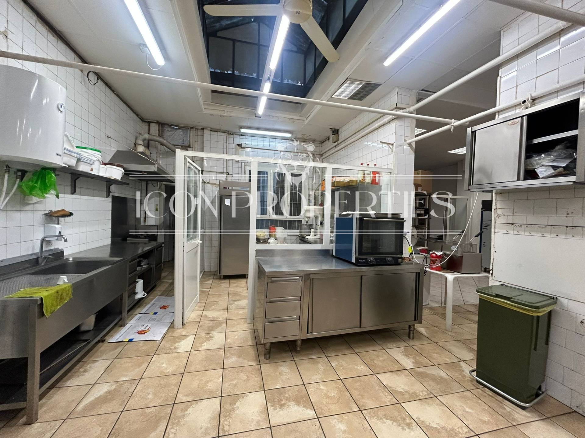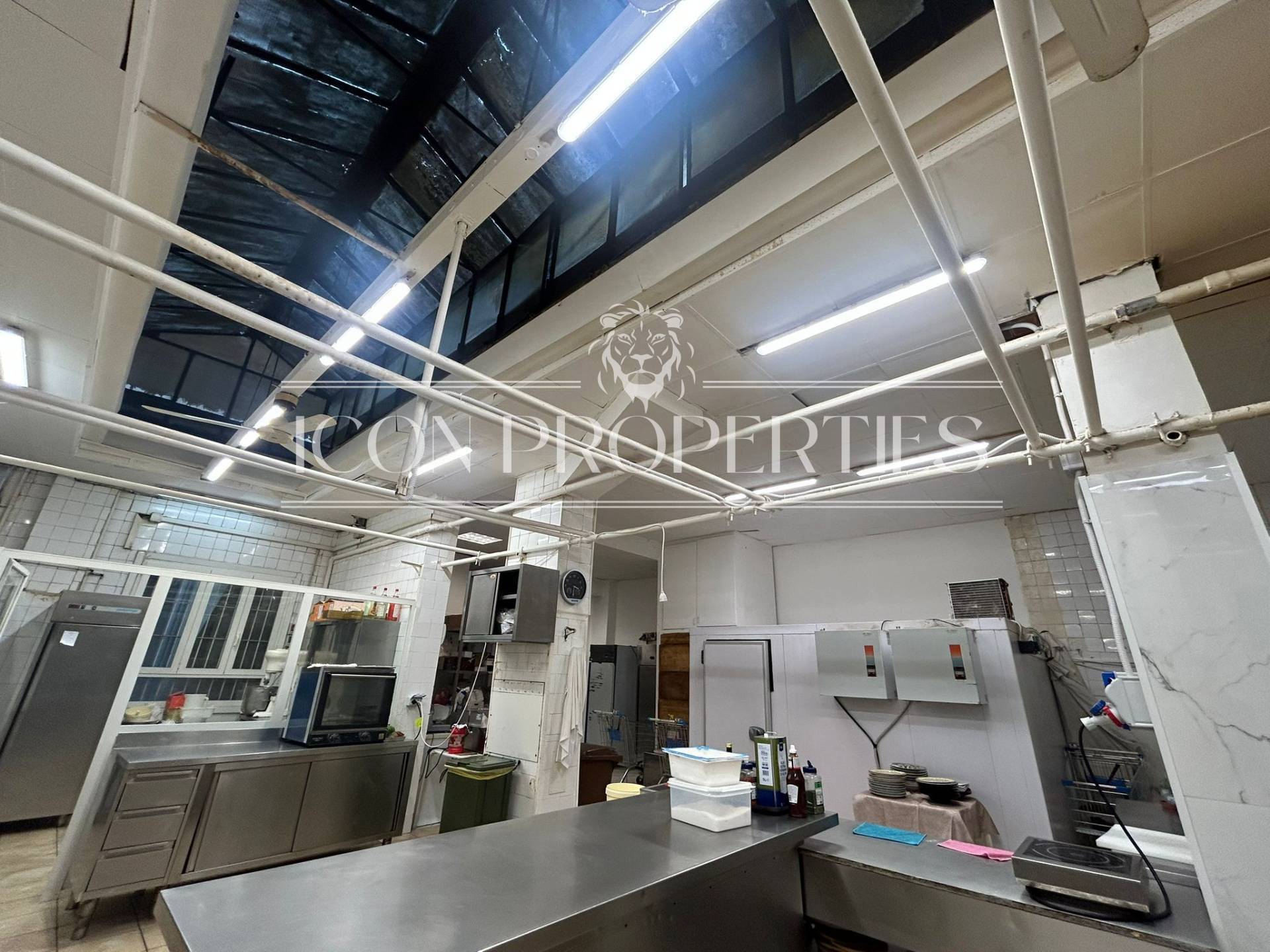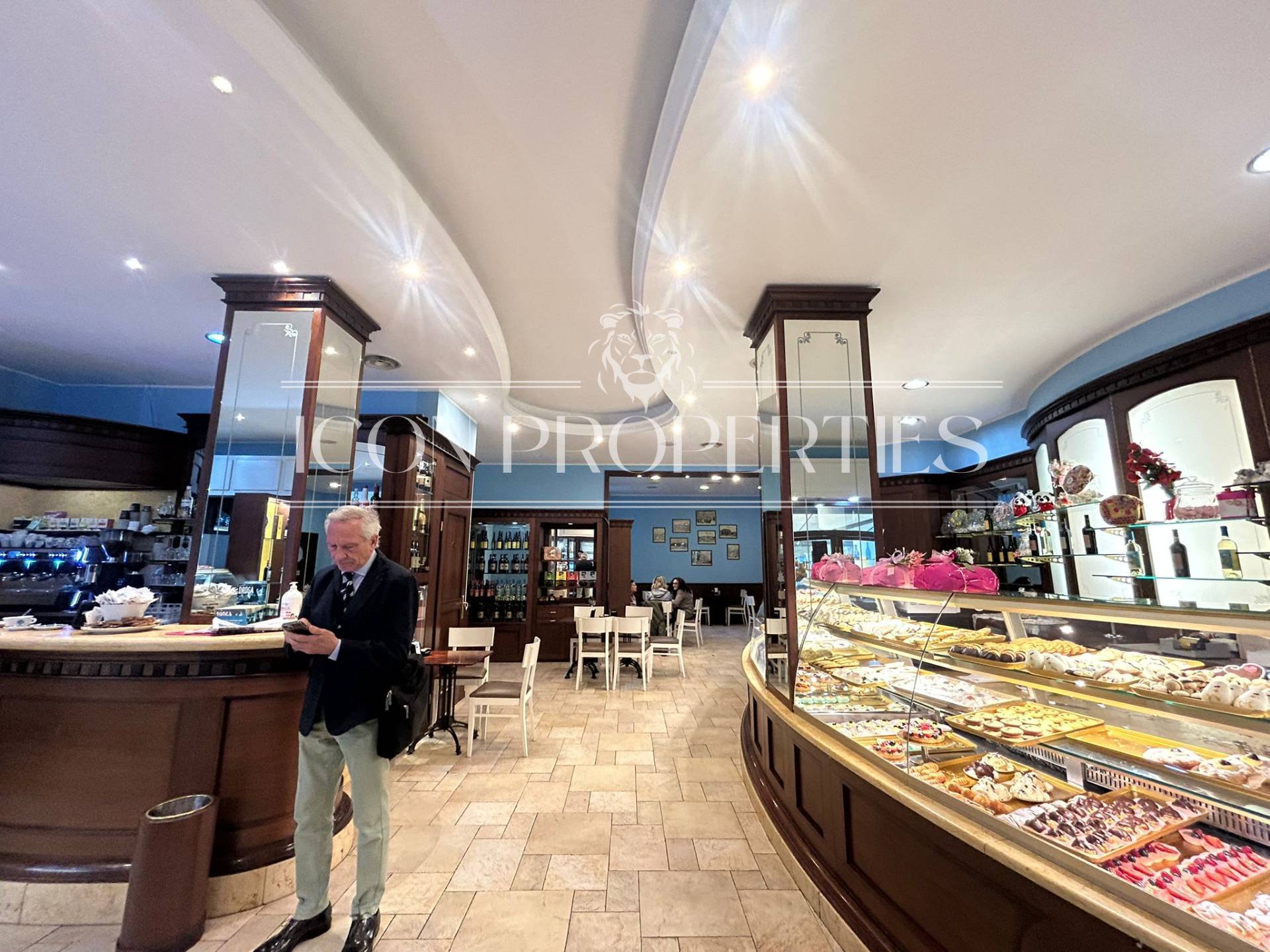 L'immobile tutto disposto al piano terra, appena si entra si trova tutta la parte adibita a negozio , vendita e somministrazione oltre ai doppi servizi interni (160 mq), nel retro del negozio invece di trovano 210 mq. di laboratorio, cucina, troviamo anche le celle frigoriere e la canna fumaria.