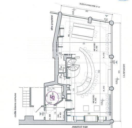 L'immobile cos composto: 90 mq. al piano terra con bagno gi adibito a disabili, oltre a 20 mq. al piano interrato magazzino con altro bagno riservato al personale.