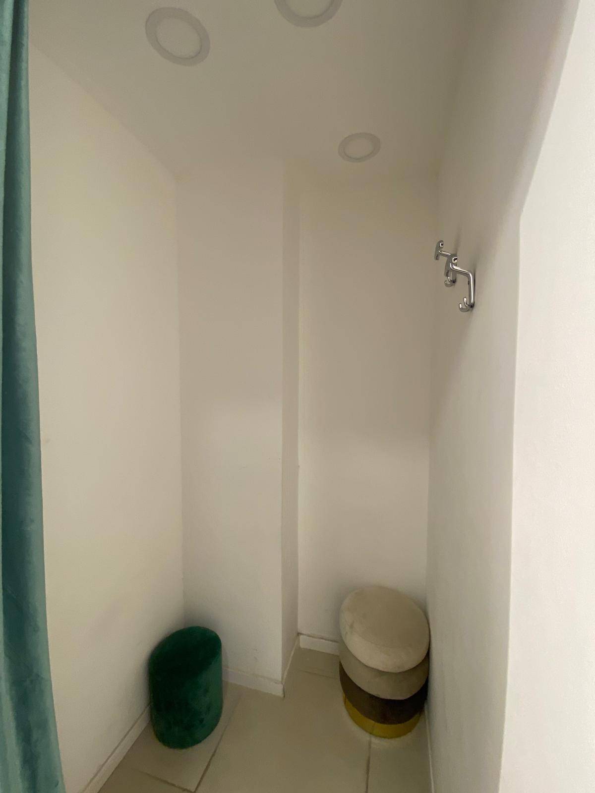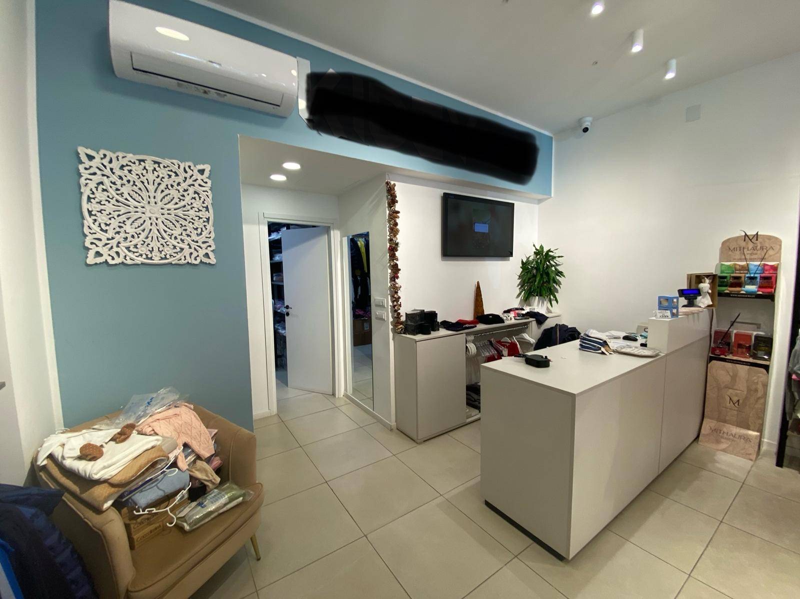 La soluzione cos distribuita, ingresso su area vendita/esposizione, fitting room, area magazzino per lo stoccaggio della merce ed attiguo servizio per il personale dipendente.