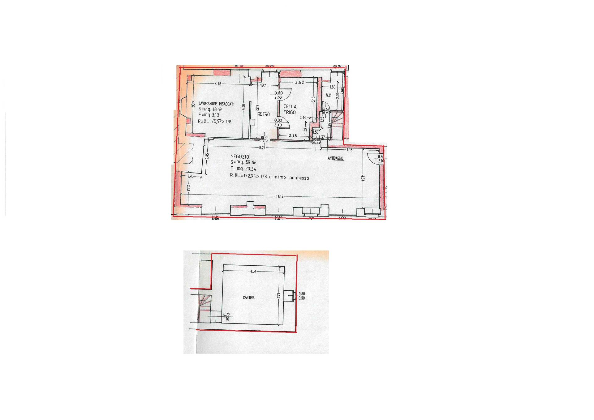 L' immobile composto da ingresso su ampia zona adibita alla vendita di 60 mq, sul retro vi sono altre due stanze ad uso magazzino, cella frigoriera, ripostiglio e servizio.