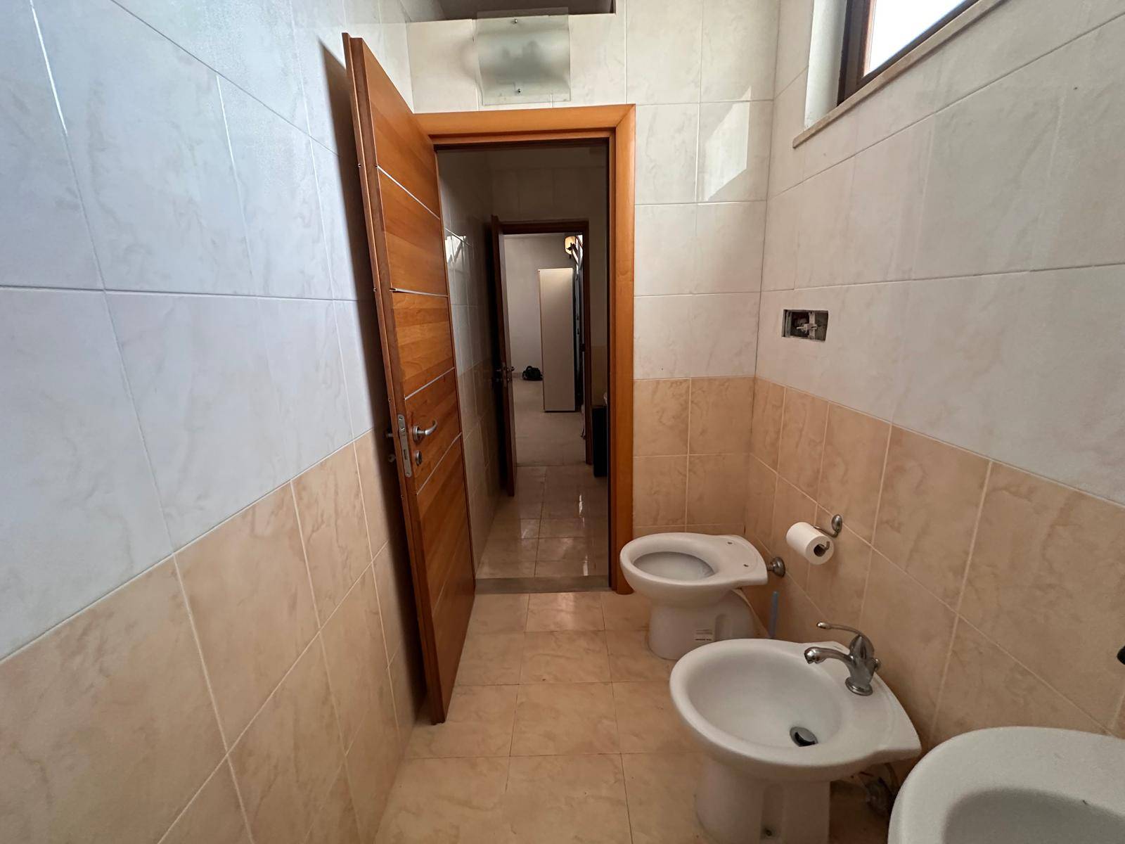 Il bagno, dotato di tutti i servizi essenziali, situato sul retro del negozio.