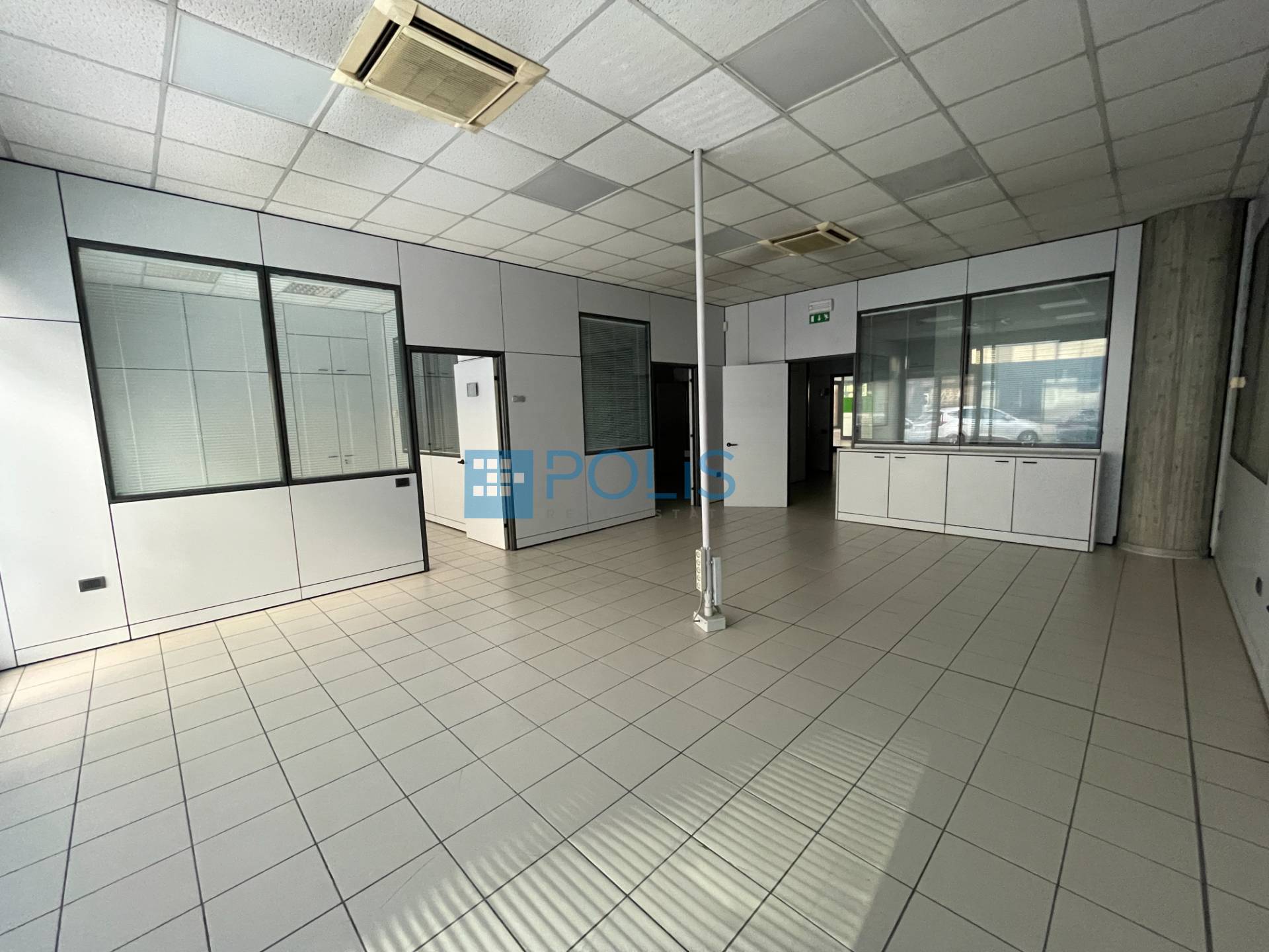 L'immobile si estende su una superficie commerciale di circa 325 mq ed suddiviso in ingresso, uffici di varie metrature, sala riunioni, archivi, tre bagni; le ampie vetrine permettono una maggiore luminosit naturale.