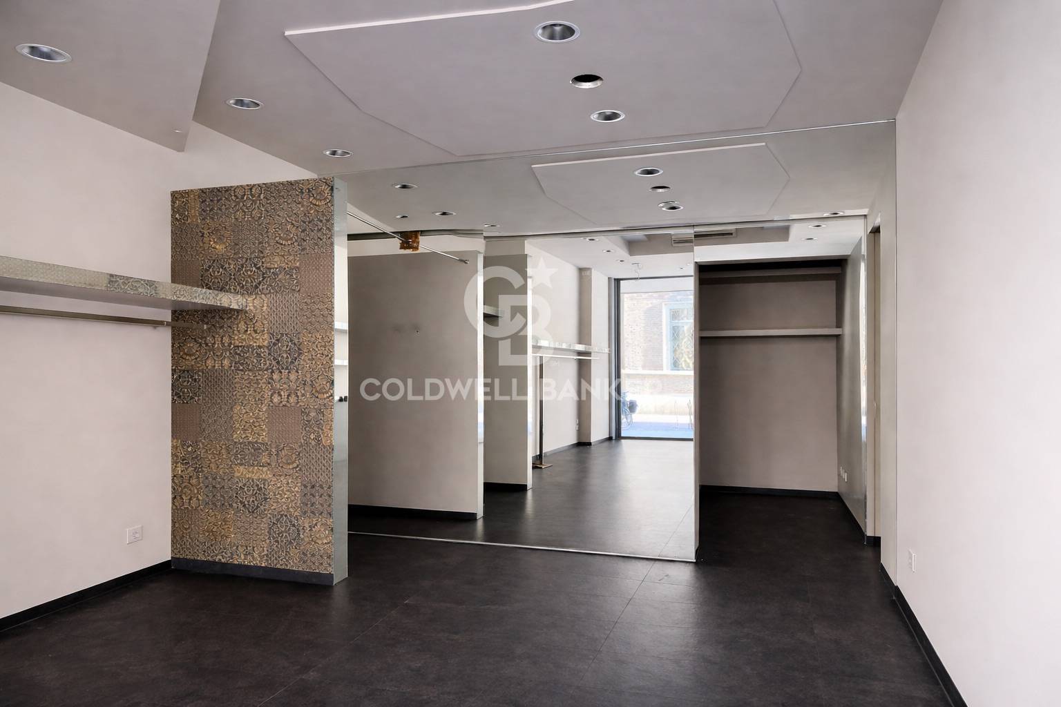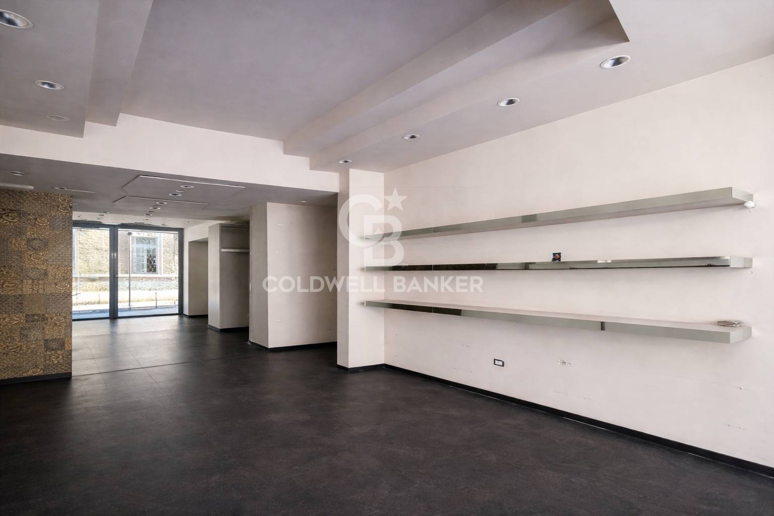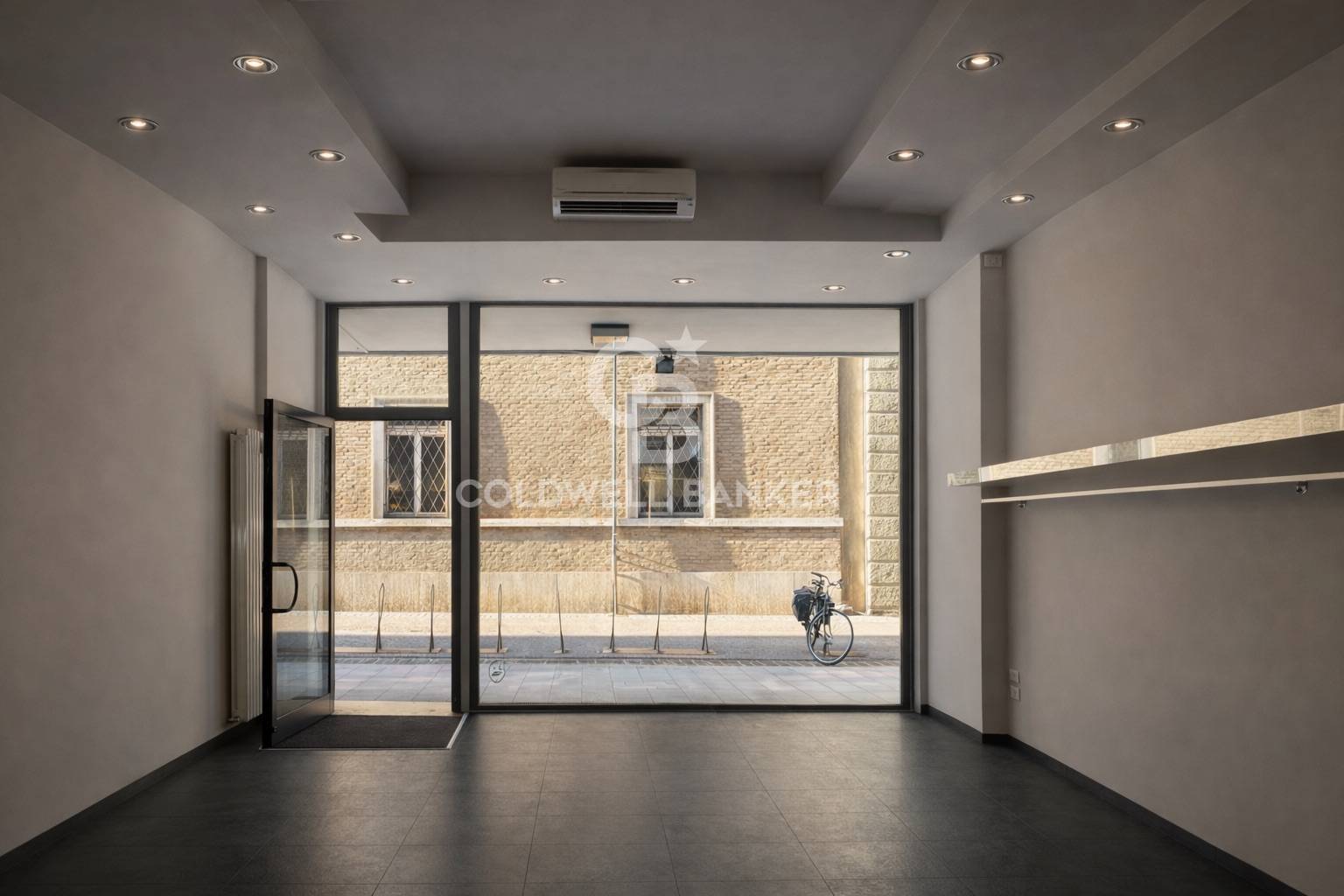 Gli interni, moderni e luminosi, sono valorizzati da soffitti ribassati con illuminazione a faretti incassati, pensati per esaltare lesposizione o creare un ambiente di lavoro raffinato e accogliente.