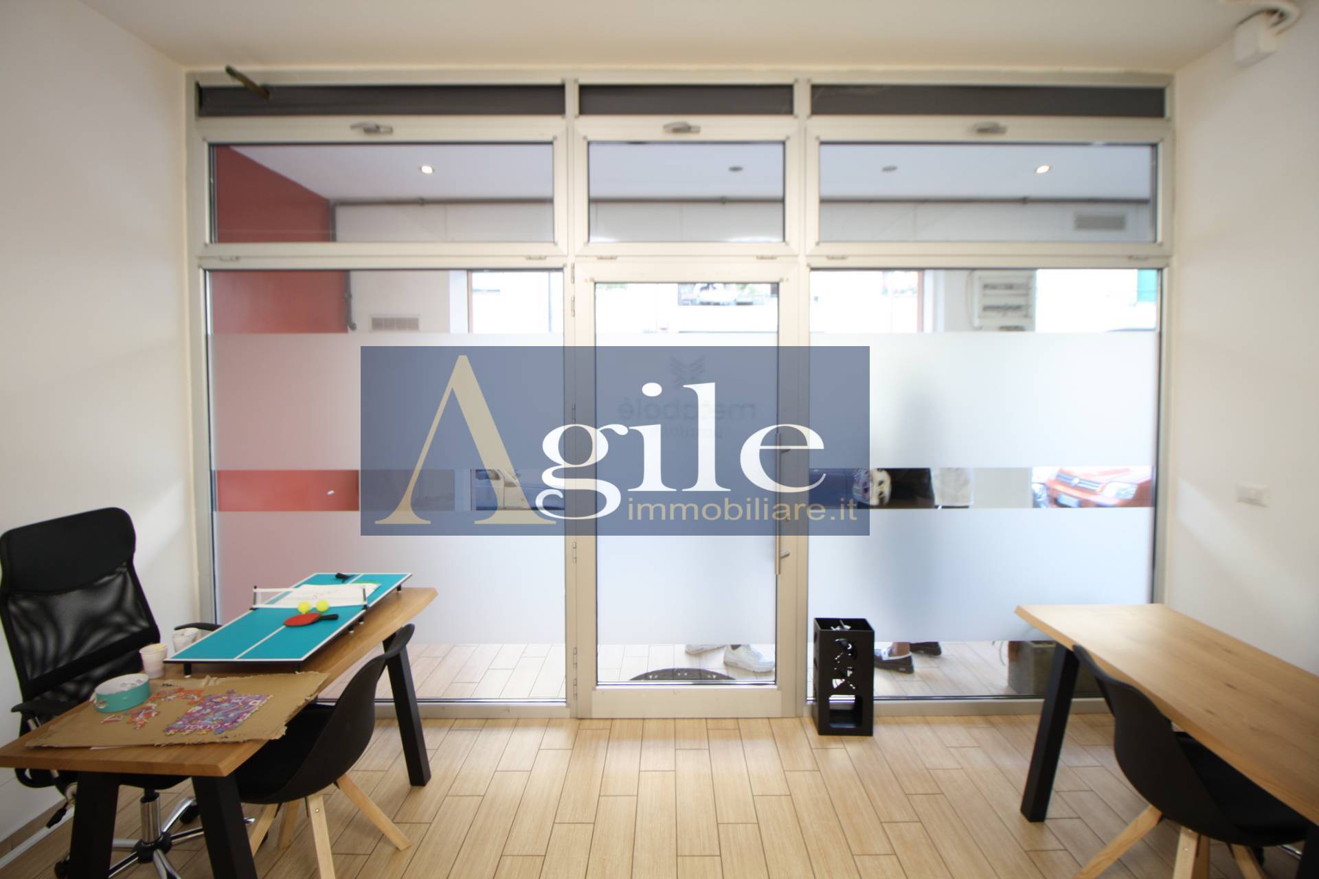 Negozio ristrutturato in vendita a San Benedetto Del Tronto- Rif. 3380 L'agenzia Agile immobiliare propone in vendita negozio di circa 100,00 mq posto al piano primo con esposizione SUD/NORD all'interno di una piccola ed elegante palazzina e cos composta: ingresso su ampio salone, laboratorio, ripostiglio, bagno con antibagno, corte di propriet davanti al negozio, strada di propriet adibita allo scarico merci a servizio del locale.