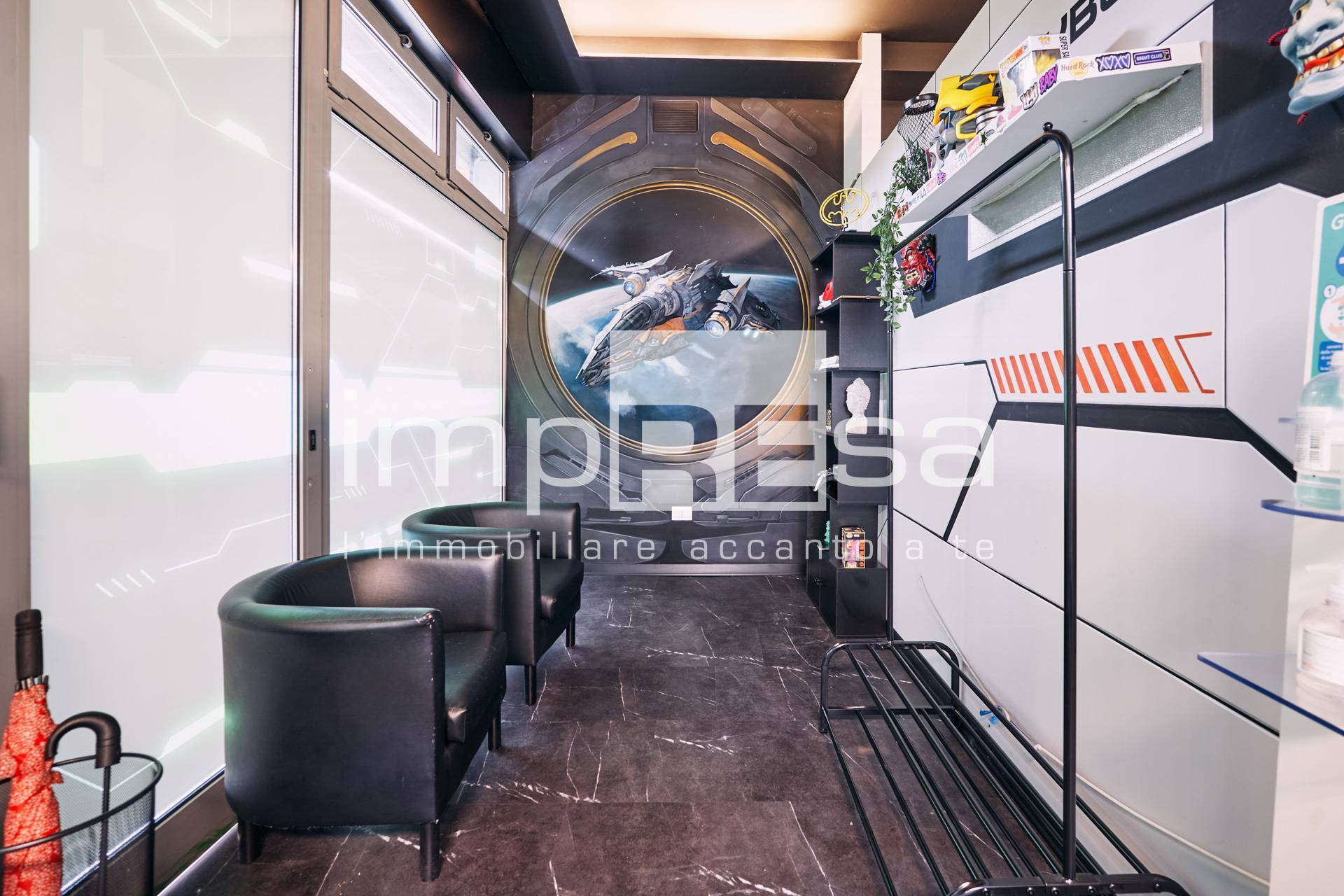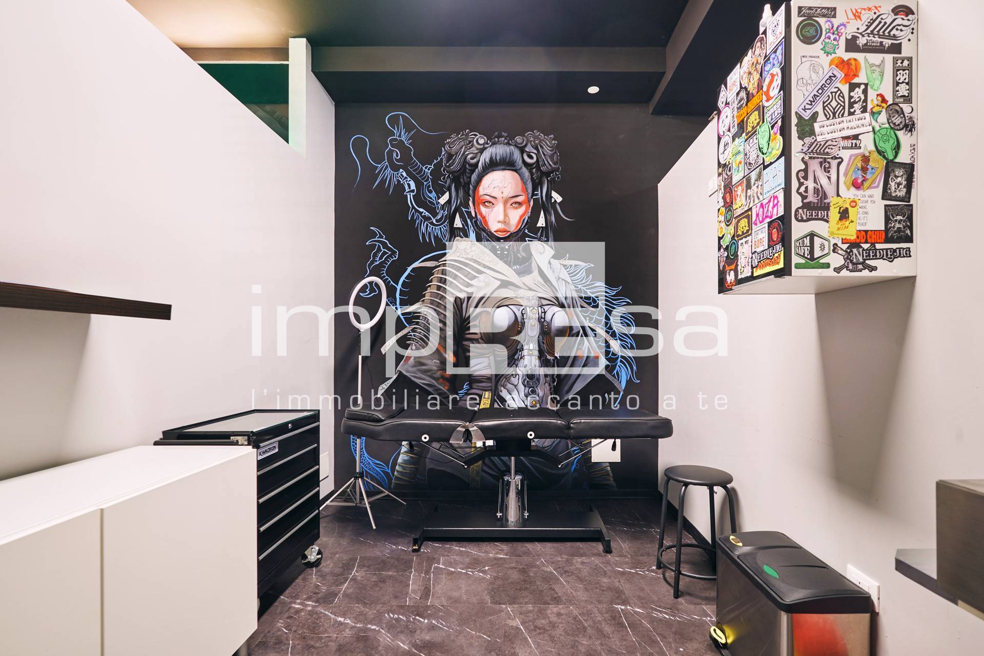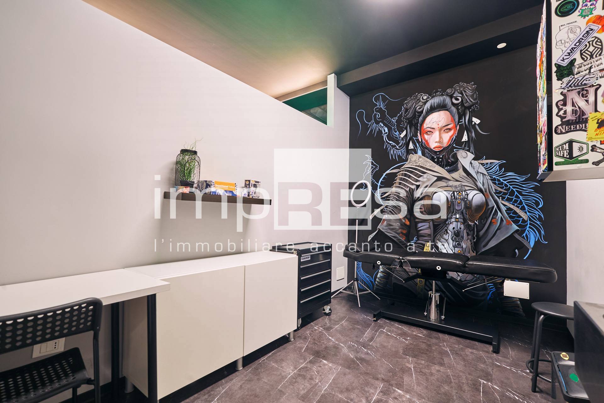 Il negozio si sviluppa nel seguente modo: l' ingresso d su una comoda reception per l' accoglienza degli ospiti, tre sale operative ricavate con pareti in cartongesso, un bagno con anticamera e una saletta ad uso magazzino per il personale.