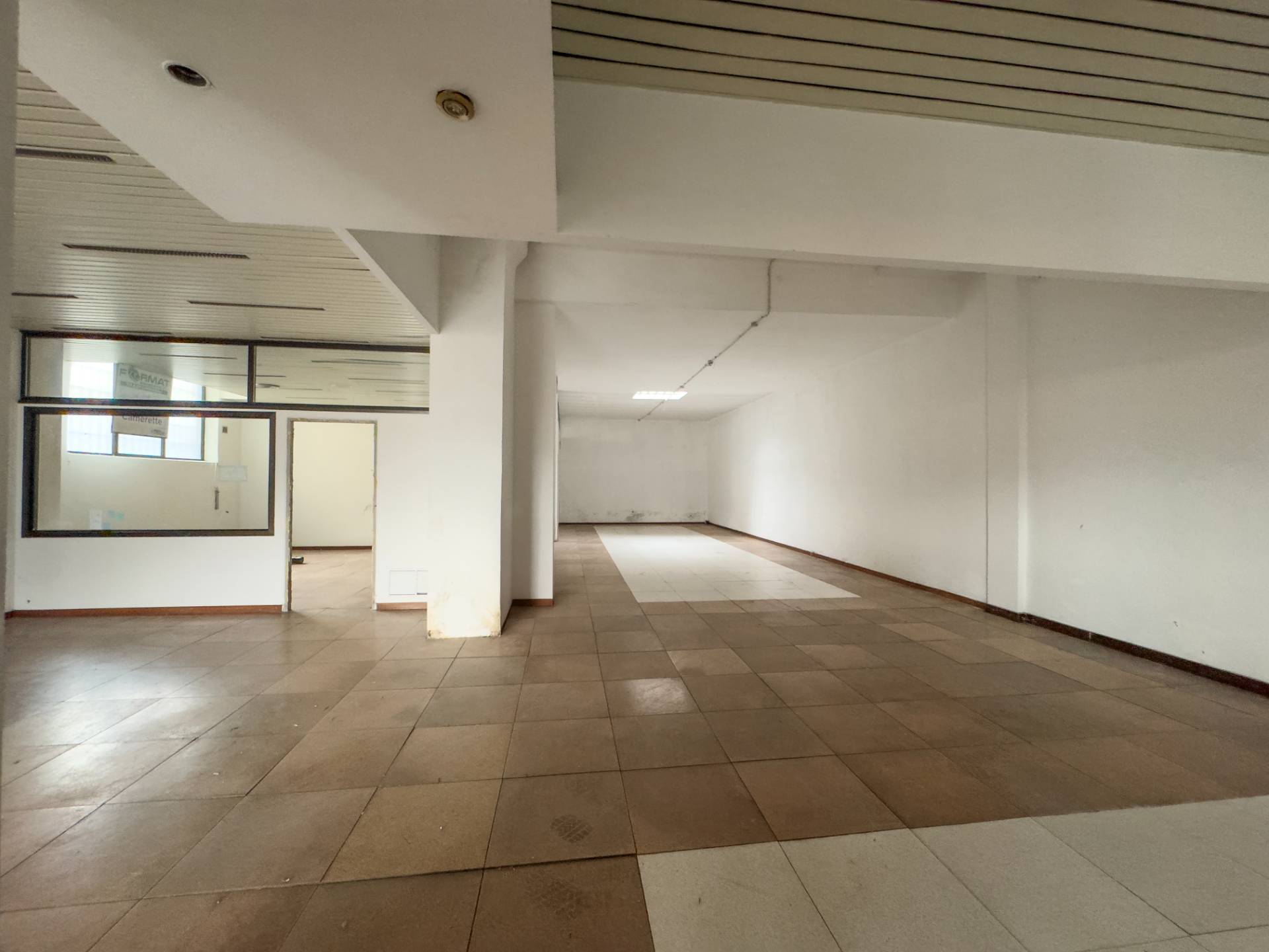 Il fabbricato, utilizzato come autosalone, ha un'altezza di 4.75 m, ed composto da un grande spazio espositivo, un ufficio, un'officina, un bagno e un box doppio.