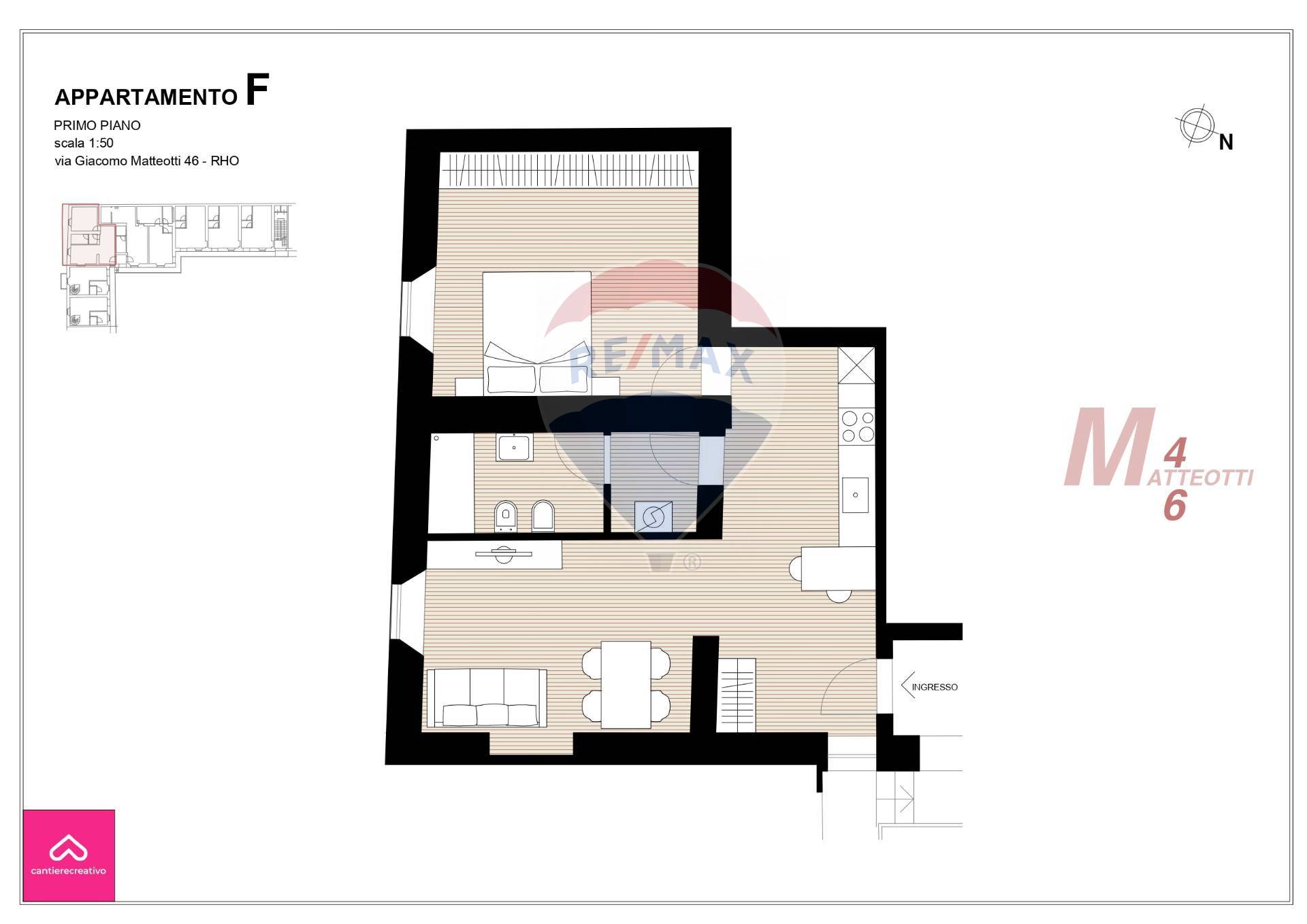 APPARTAMENTO F CON POSTO AUTO Situato nella zona centrale e residenziale di Rho, proponiamo in vendita un'incantevole Nuova Costruzione in CLASSE A1 di 76 M di 2 locali, composto da soggiorno con cucina a vista, 1 camera da letto e 1 bagno.