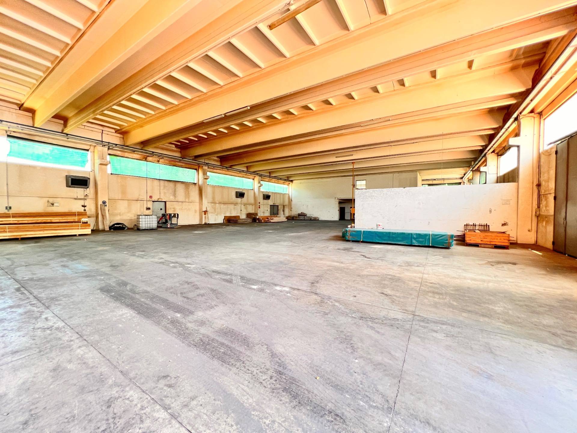 La superficie al piano terra di mq.1010, mentre al primo piano troviamo la zona uffici e magazzino per un totale di mq.426, ancora possibile realizzare un soppalco per un ampliamento di 510 mq da destinare ad ulteriori uffici e magazzini, altezza totale 8.30 mt. Dotazioni gi presenti: impianto di video sorveglianza, impianto d'allarme, predisposto per il carro ponte, serbatoio di accumulo interrato impianto antincendio, infissi a tetto apribili con sensore rilevazione fumo, n. 2 cancelli esterni motorizzati.