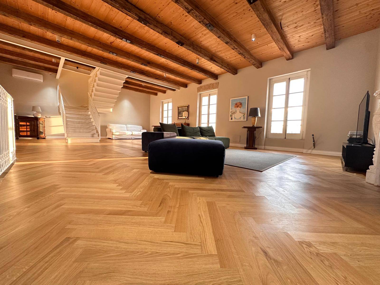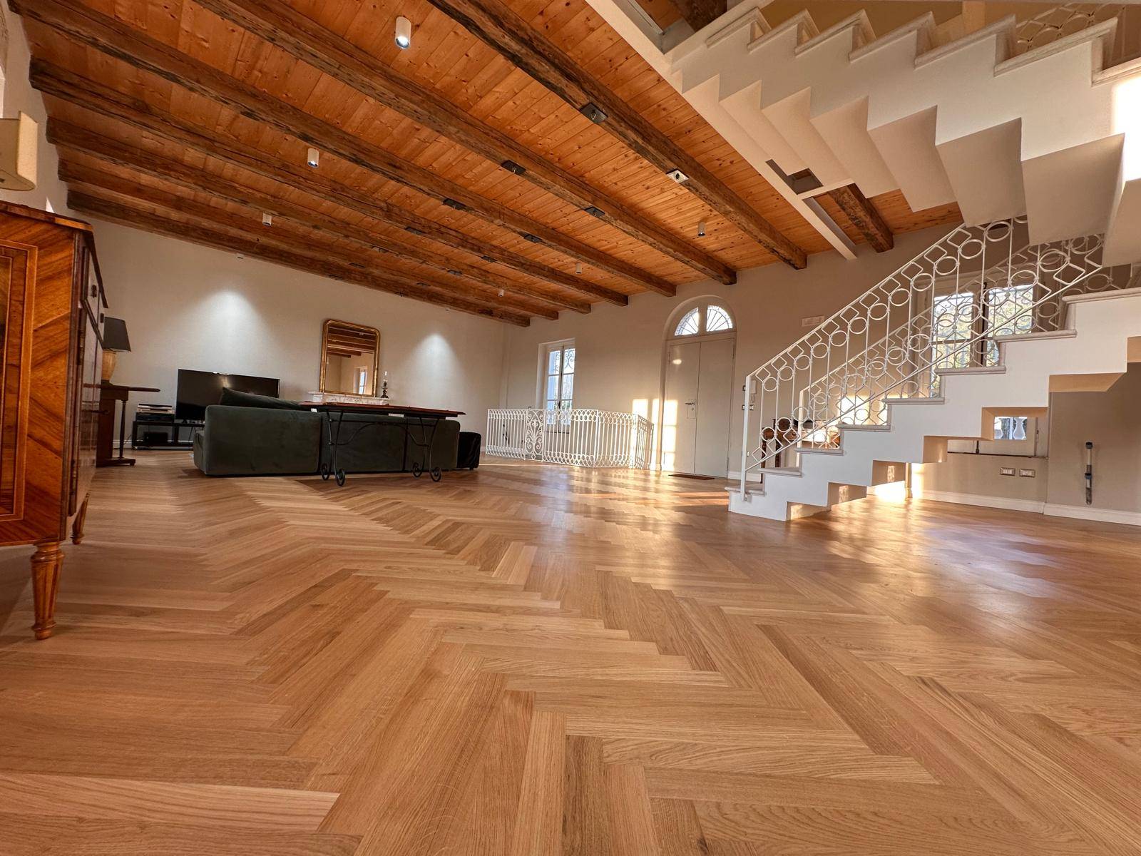 La prima unit abitativa si sviluppa su due livelli ed composta da un ampia zona giorno di circa 100 mq. totalmente parquettata con camino, attraverso una scala interna si accede alla zona notte composta da quattro camere da letto tutte dotate di bagno.