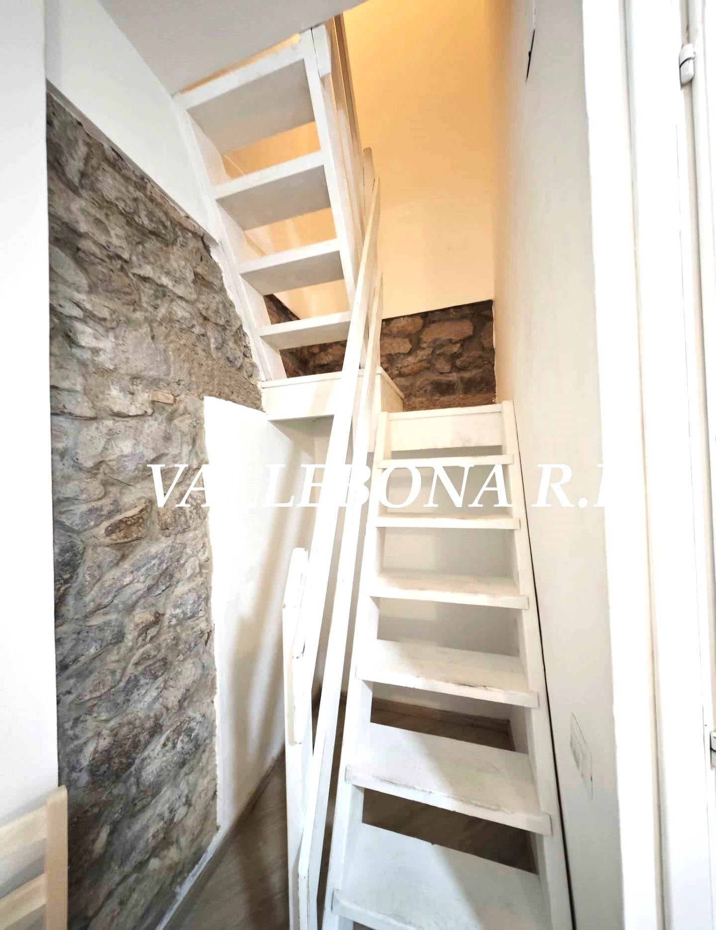 Una scala interna in legno conduce al secondo livello, dove si trovano due luminose camere da letto, di cui una con grande balcone, e un secondo bagno.