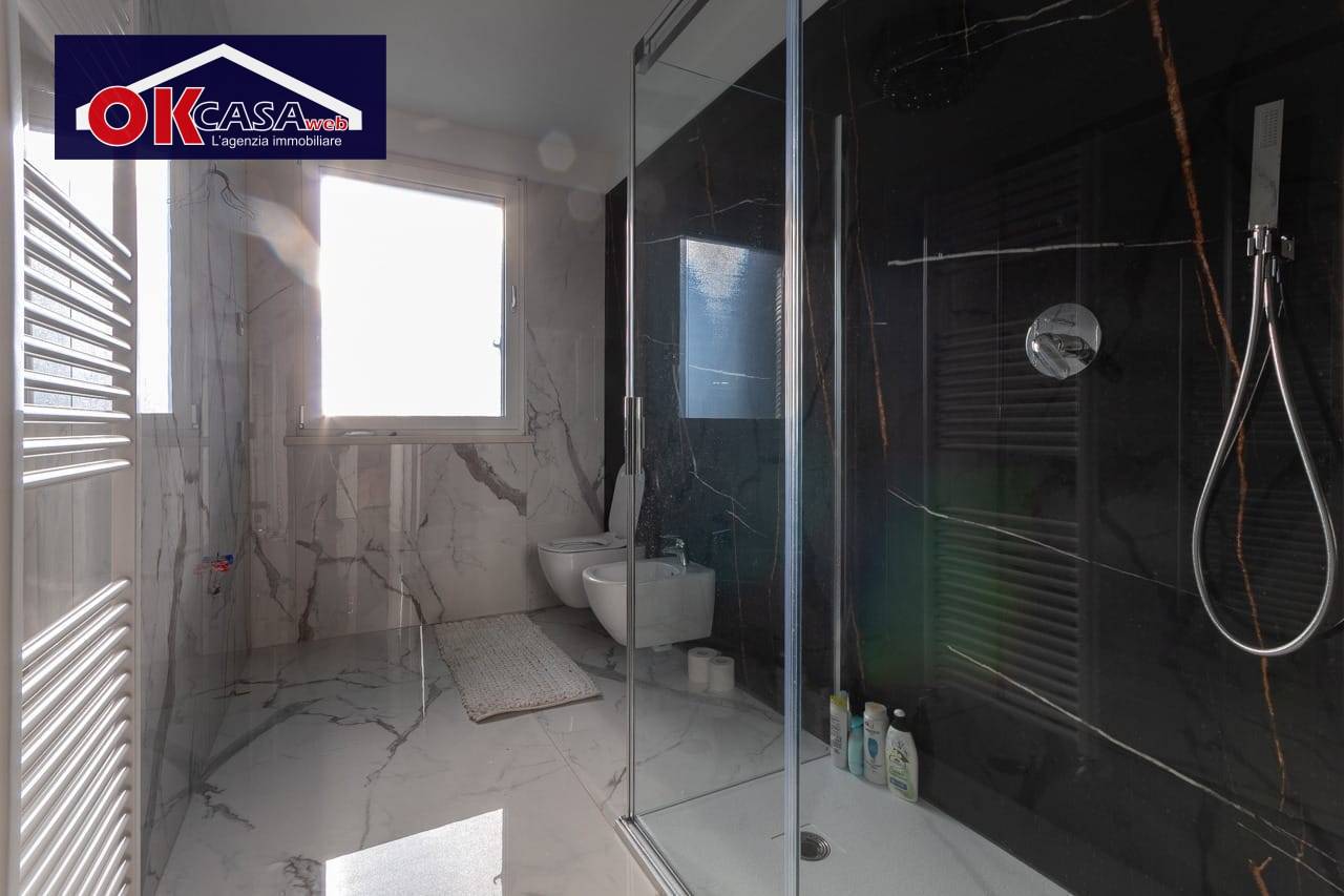 Finiture di pregio, travi a vista, materiali di prima scelta serramenti in alluminio.