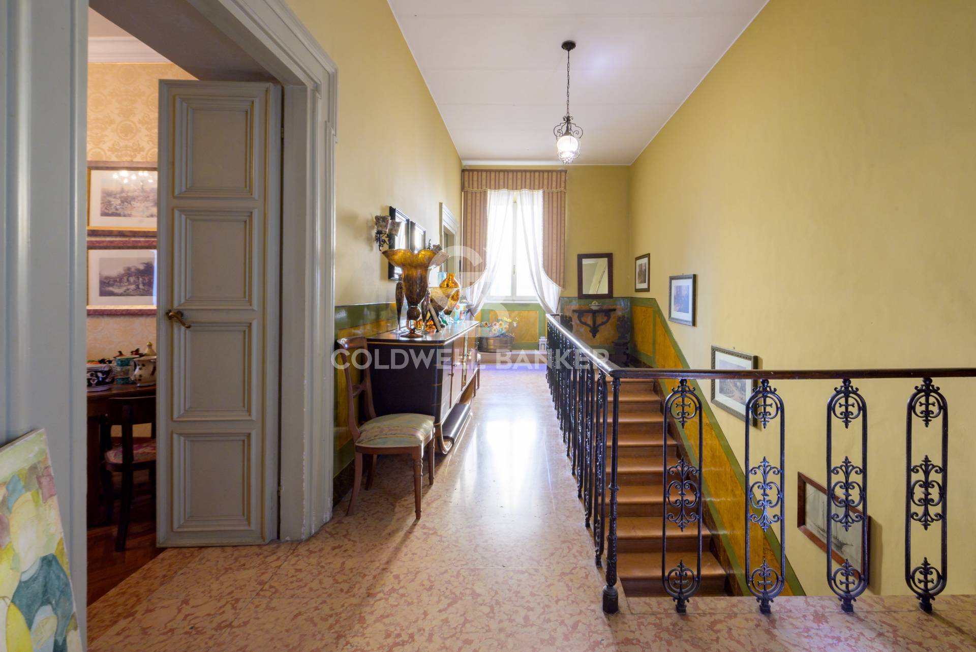 La scala in marmo con balaustra in ghisa esaltano leleganza e il prestigio, pavimenti in parquet e monocottura, ampi infissi e persiane in legno doppio vetro.