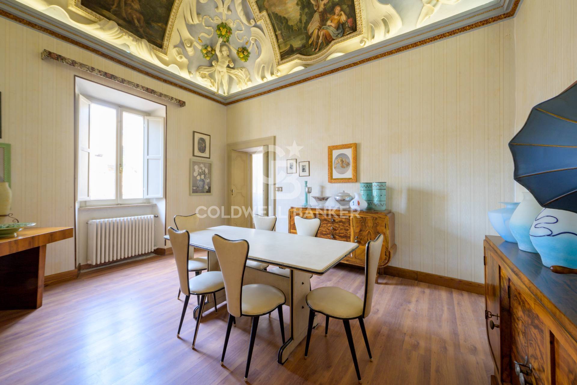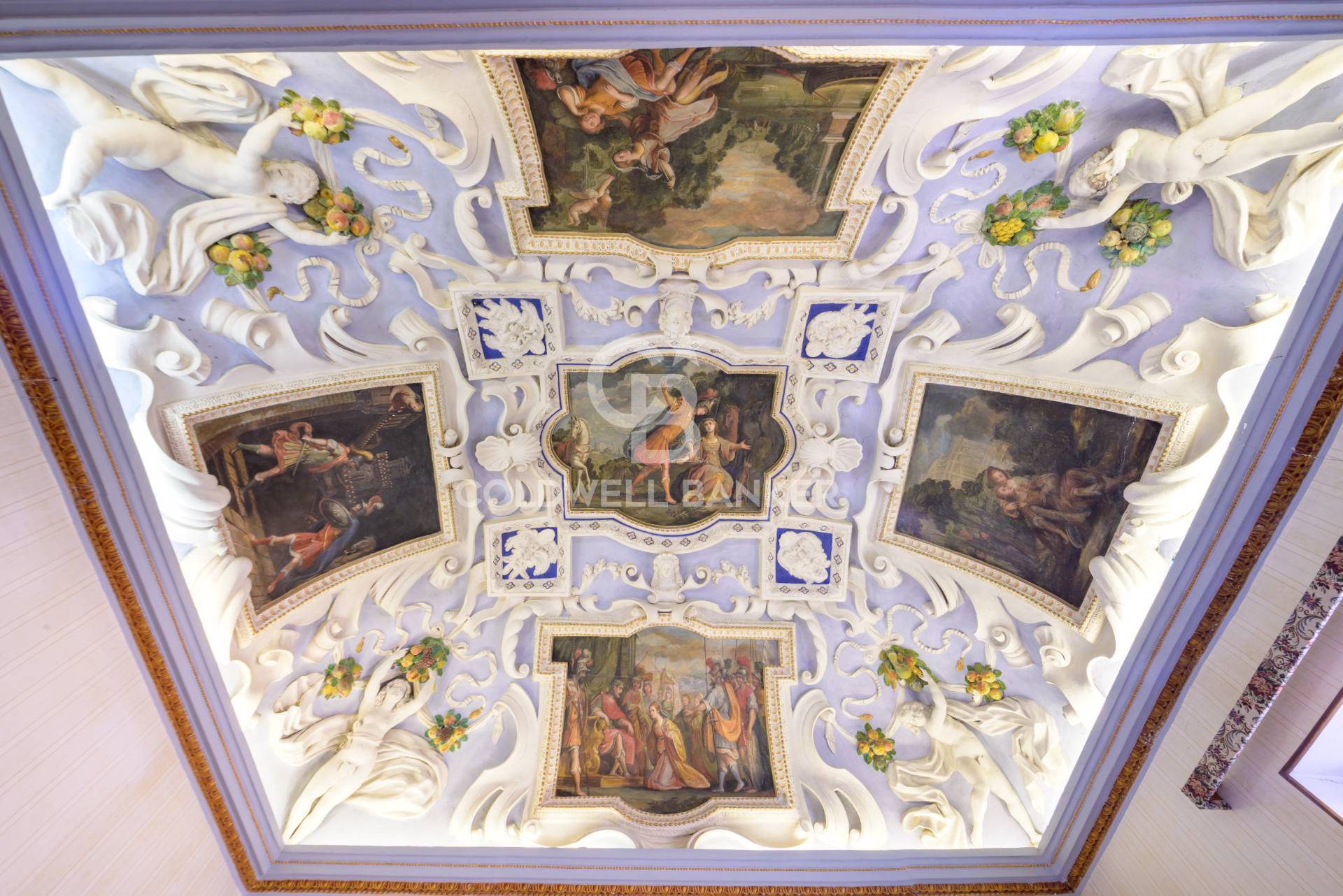 Piano nobile: comprende cucina, un soggiorno, tre magnifiche sale affrescate con camino, un salottino, disimpegno, due camere matrimoniali, due bagni e terrazza.