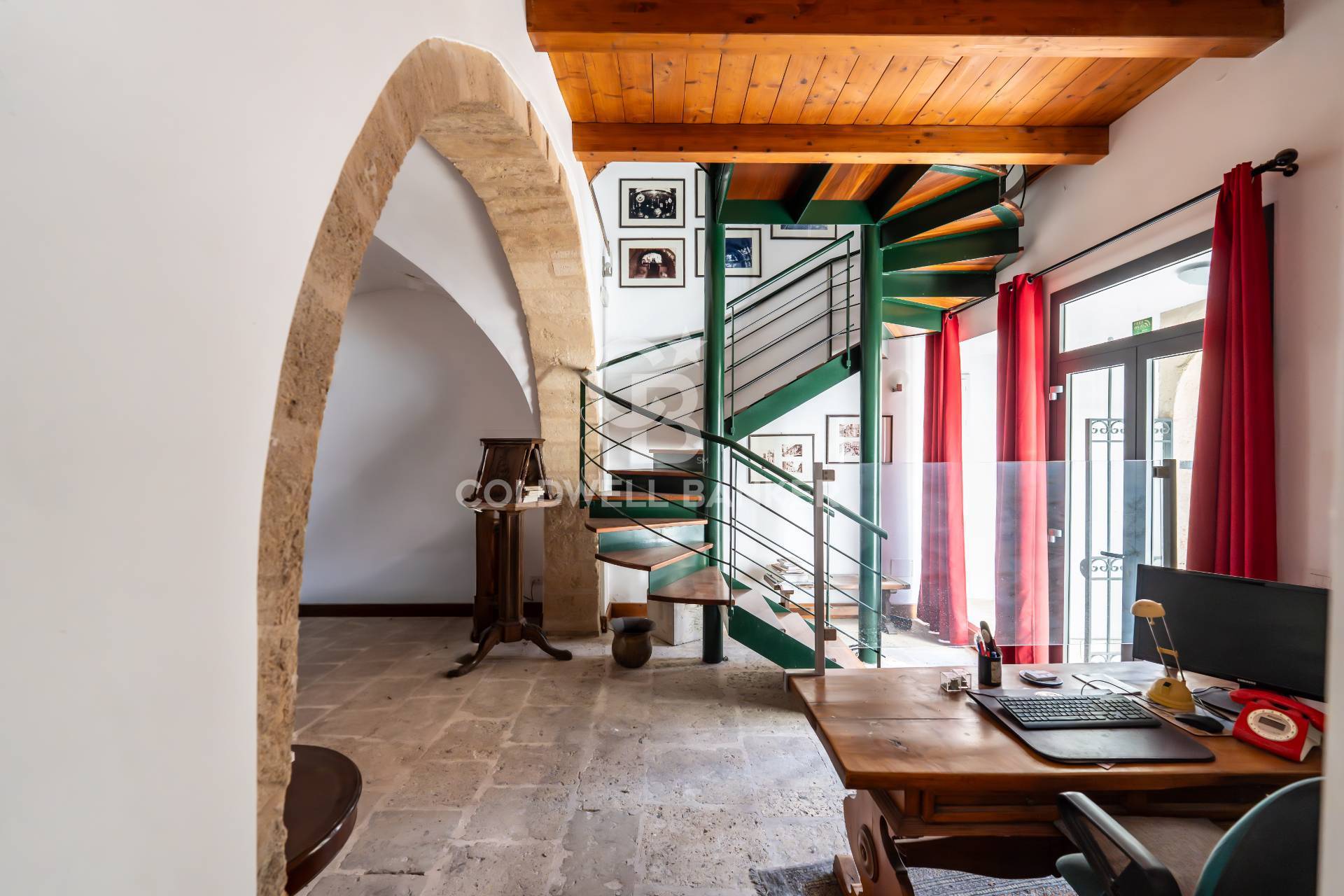 Gli interni, restaurati con grande attenzione, presentano pavimenti in pietra del posto nelle aree comuni, parquet nelle camere e una scenografica scala in ferro e parquet che collega i diversi piani.