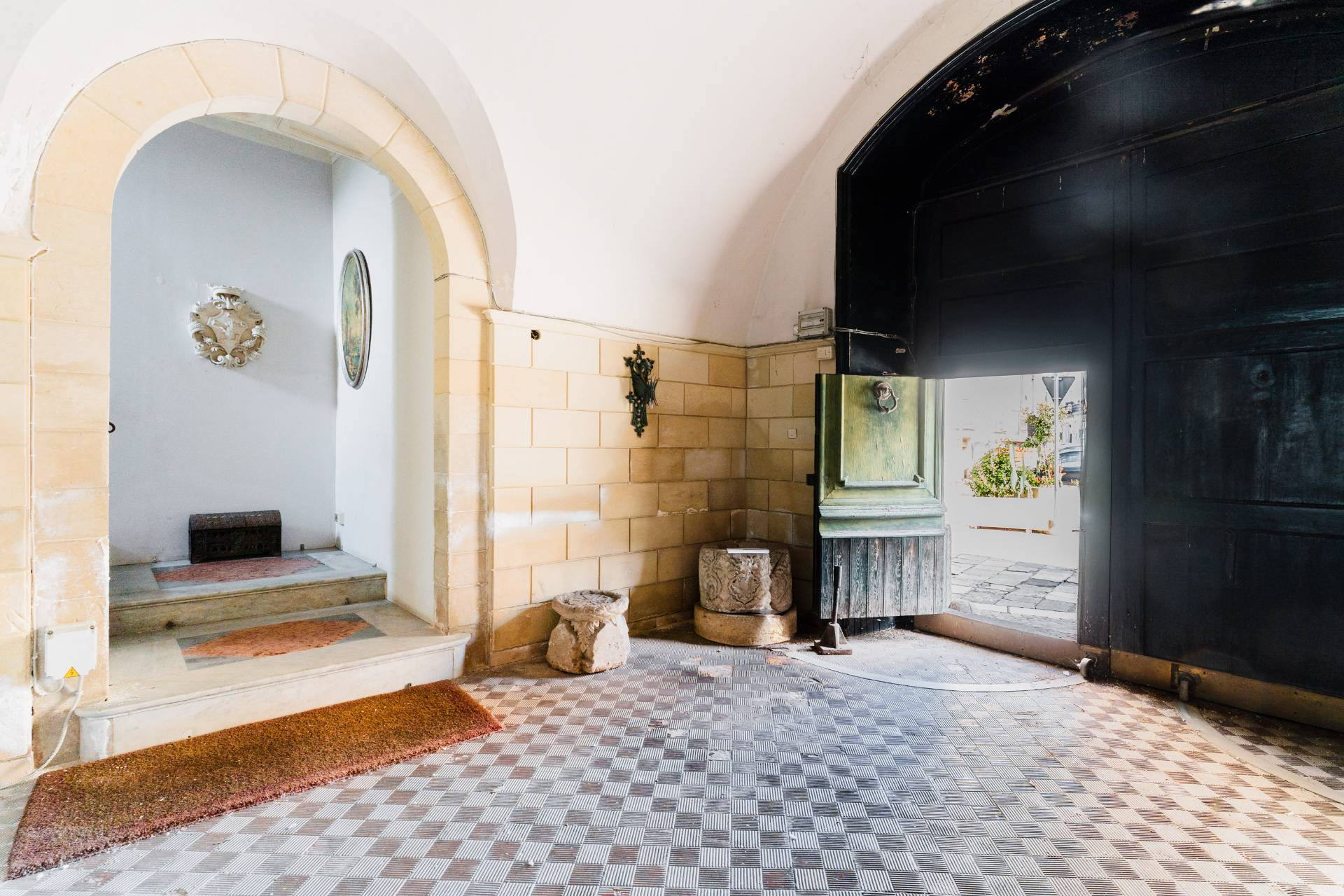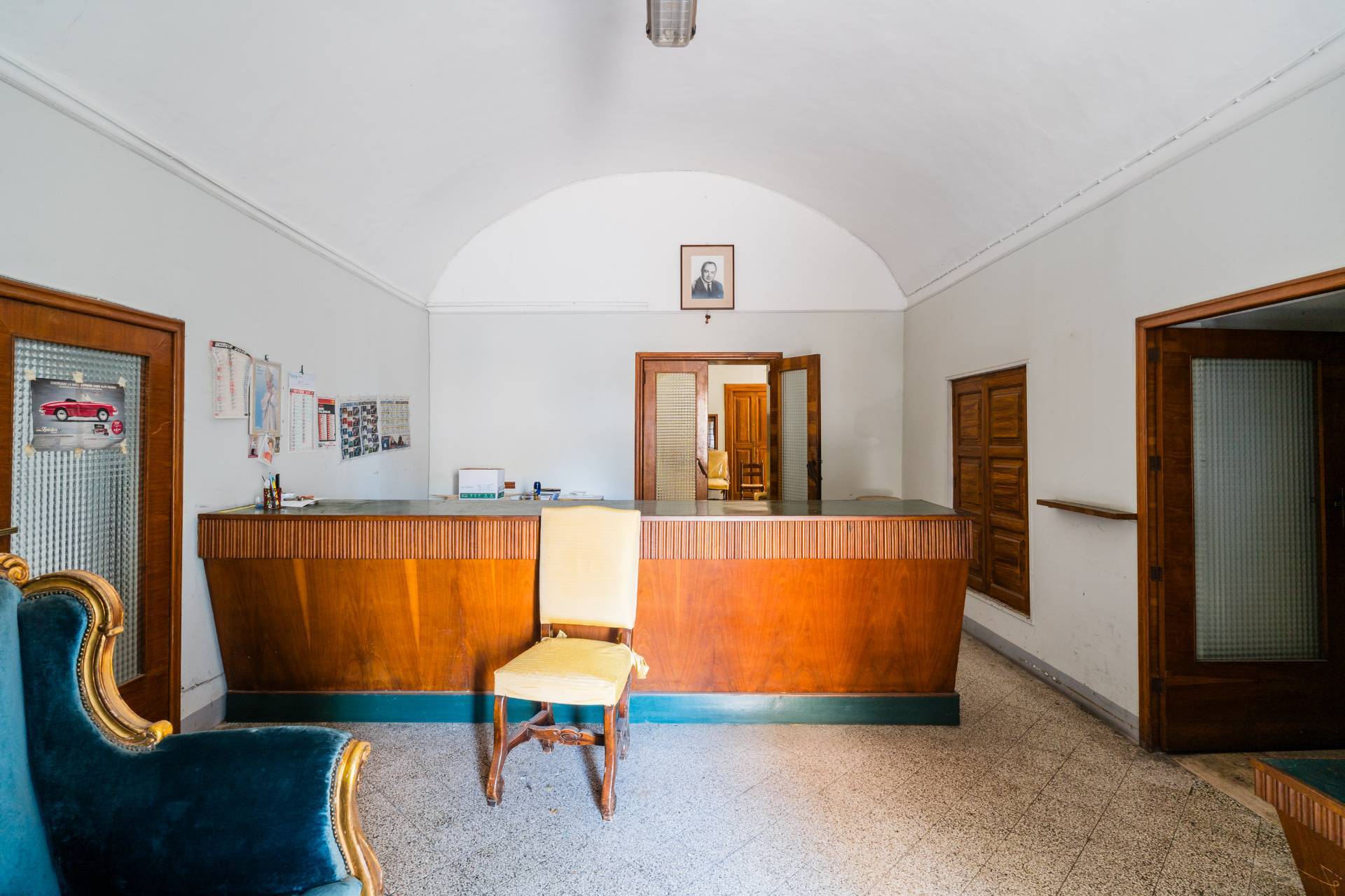 Affacciato sulla piazza principale, incastonato tra le vie pi suggestive del borgo, il palazzo ha diversi ingressi, con i suoi oltre 2.000 mq coperti, 22 camere e 5 bagni, ampie terrazze panoramiche e un giardino interno da 1.455 mq che pulsa come un cuore verde e silenzioso.