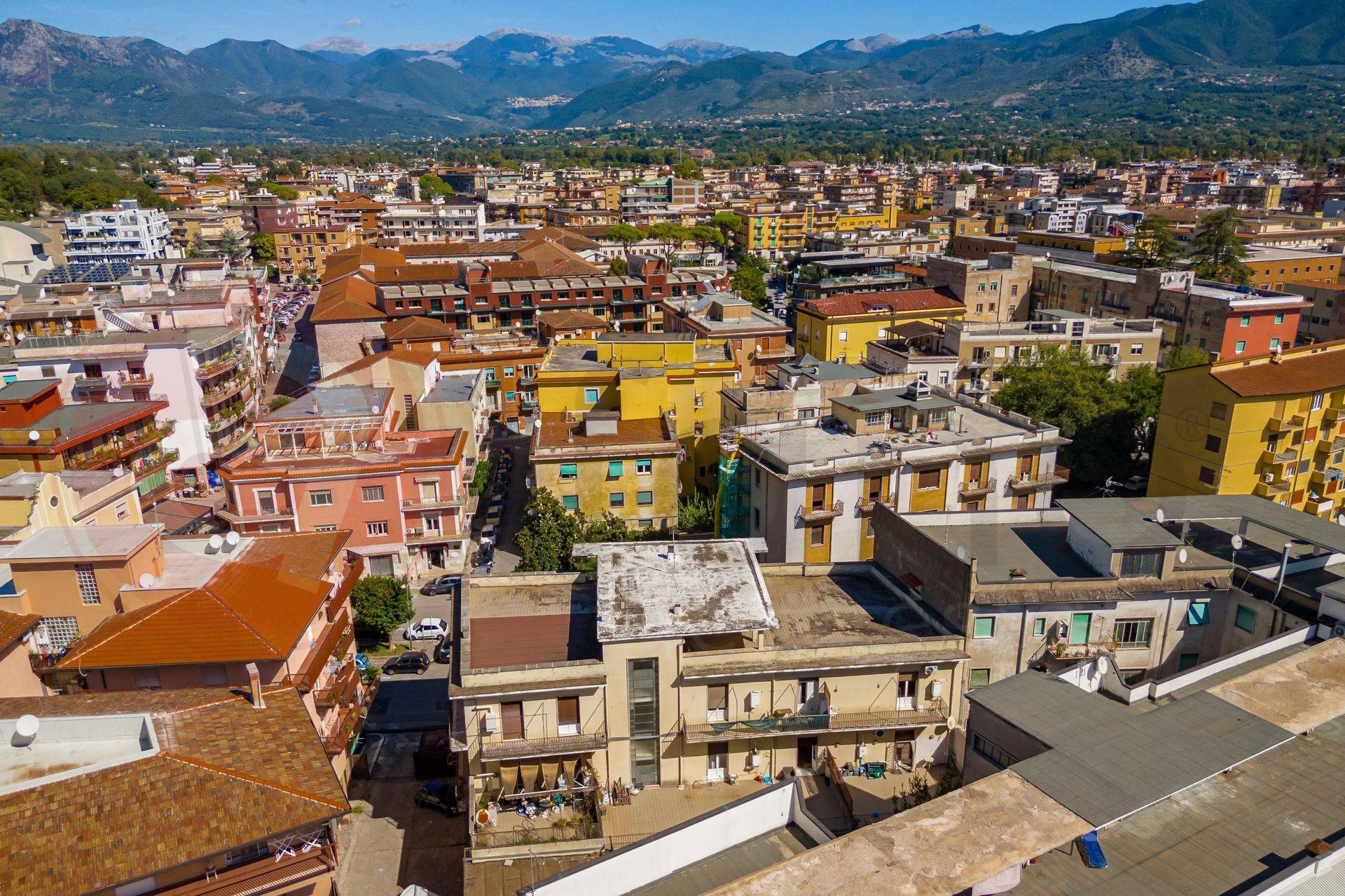 L'immobile stato costruito agli inizi degli anni 50', al pian terreno sono presenti le otto unit adibite ad uso ufficio o commerciali, al primo e secondo piano sono presenti gli altri otto appartamenti di varie metrature, mentre al terzo ed ultimo piano c' un grandissimo terrazzo di 400 mq con affacci panoramici sulla citt di Cassino, L'abbazia e Rocca Janula.