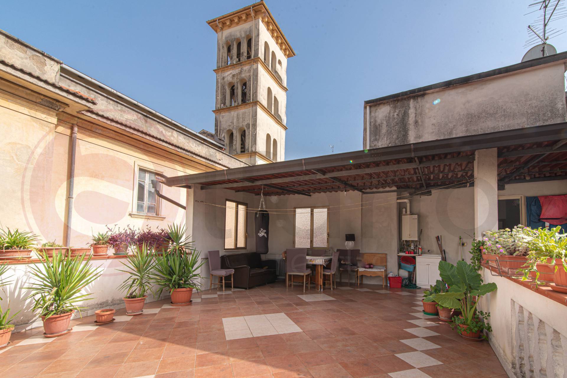 Al pian terreno c' una grande cantina con doppio ingresso sia interno che su strada da ripulire, un altro appartamento di 80 mq da ristrutturare con accesso al fantastico ed esclusivo giardino di propriet di circa 600 mq . Il terrazzo all'ultimo piano che affaccia sulla villa comunale e sulla vallata circostante assieme al giardino, rendono questo immobile un'occasione unica sia per uso proprio abitativo, che per uso investimento data la posizione e l'ubicazione.