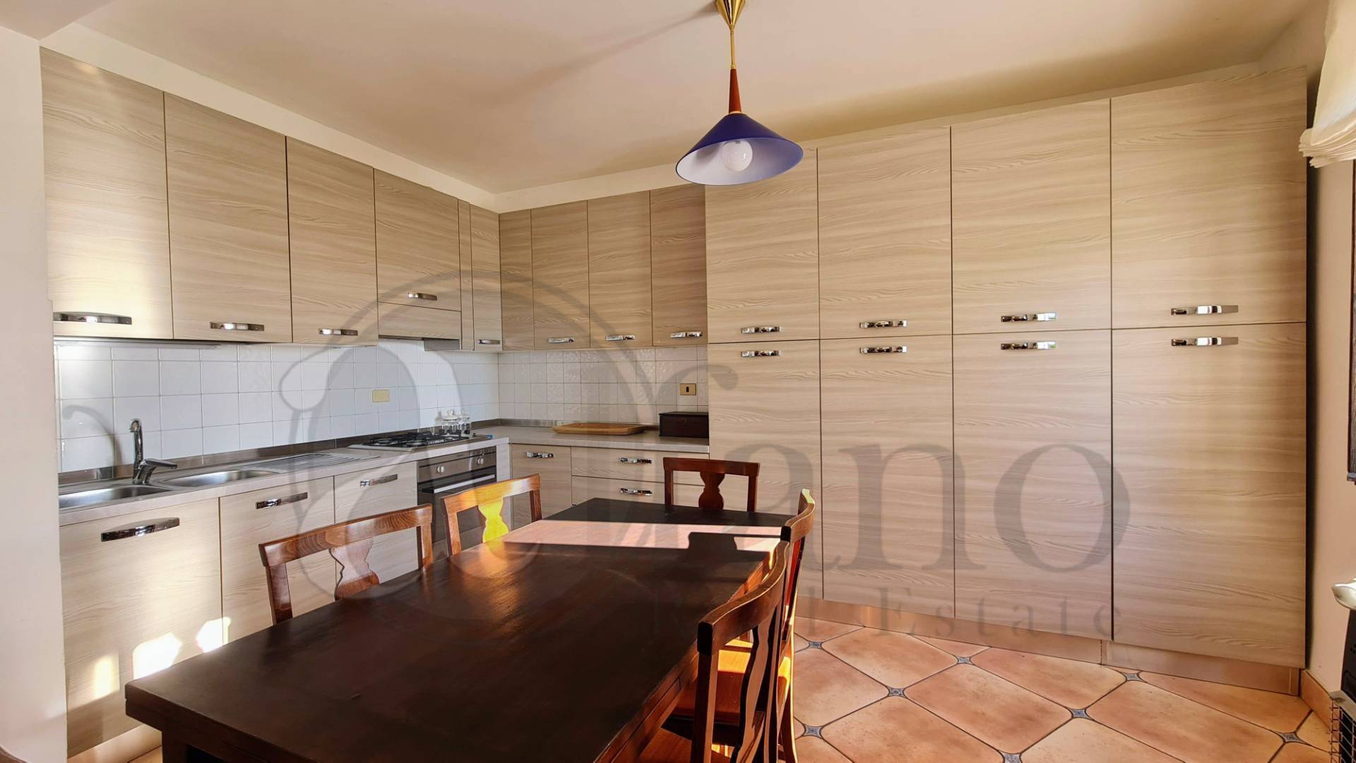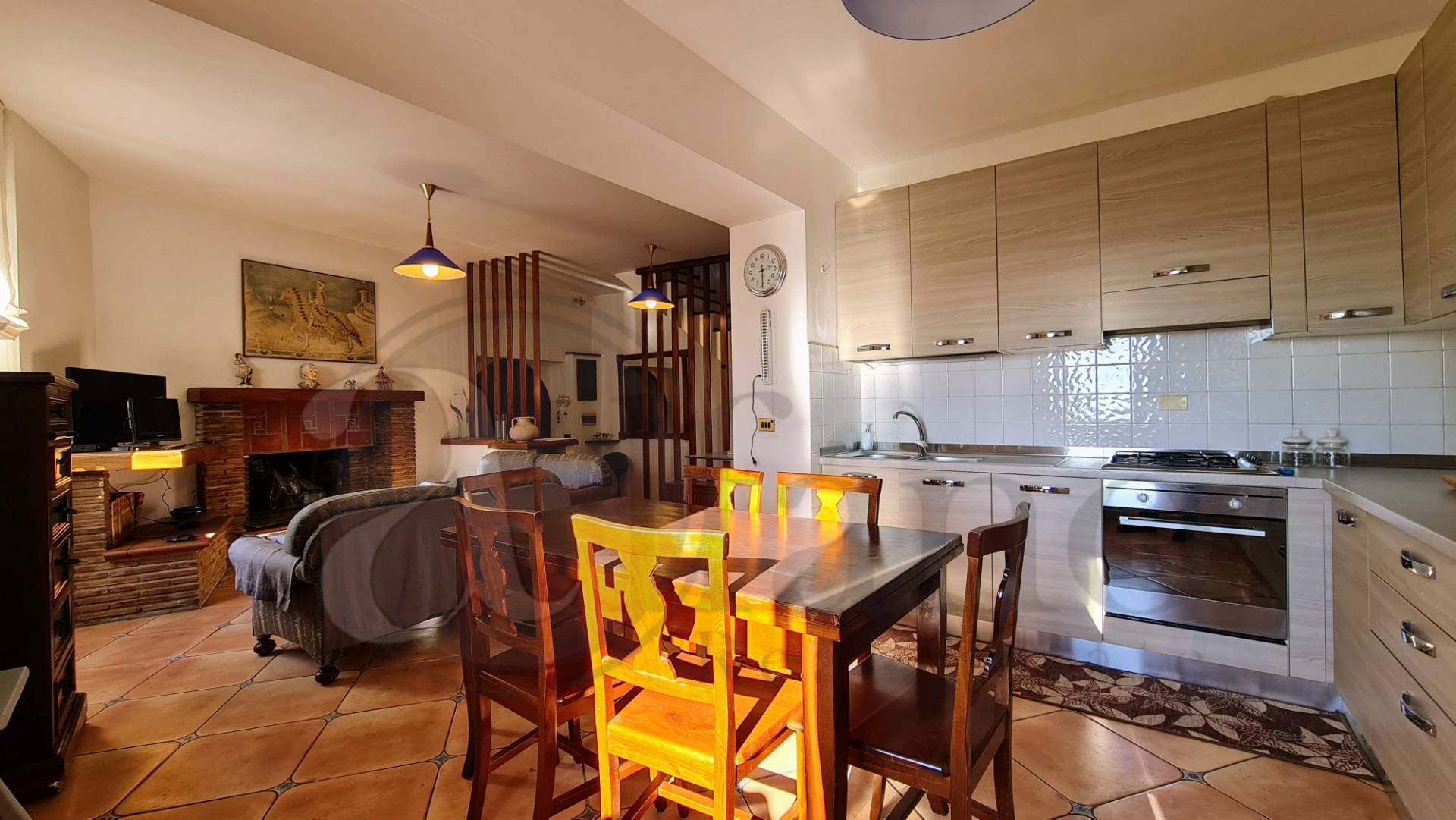 Al piano rialzato ci accoglie la zona giorno, composta da un ampio salone doppio con cucina a vista su misura, caratteristico camino originale reso ancora pi unico nel suo genere grazie ad un pannello in rame fatto a mano da un artigiano locale e servizio.
