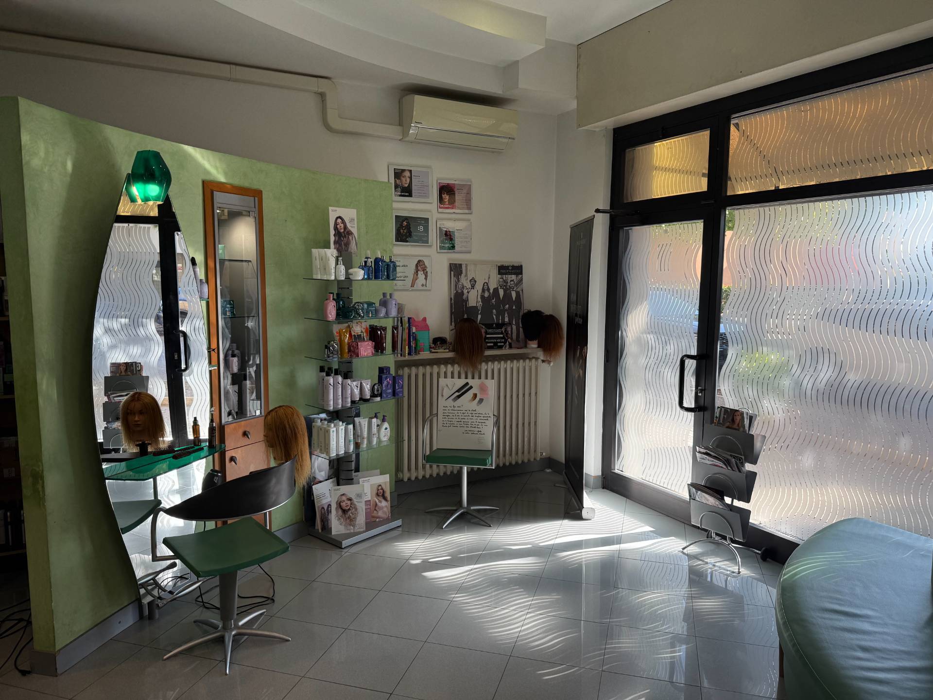 100 mq. con ufficio, magazzino, 3 lavatesta, 6 postazioni tecniche e 4 taglio.