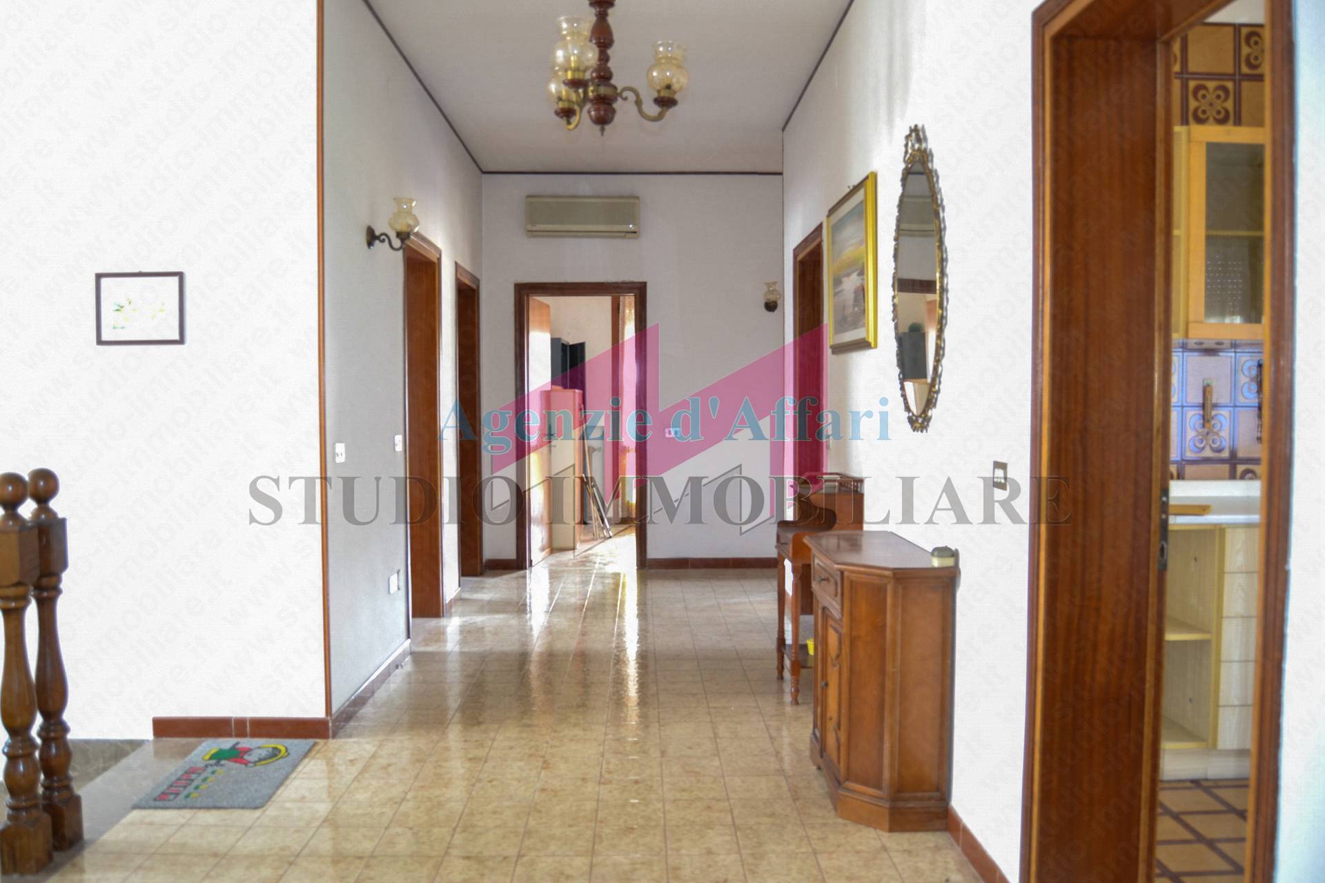 L'immobile composto da ingresso, corridoio, soggiorno, ampia cucina abitabile con balcone, tre camere da letto, studio, antibagno, bagno e terrazza coperta di 48mq. Garage e giardino indipendenti.