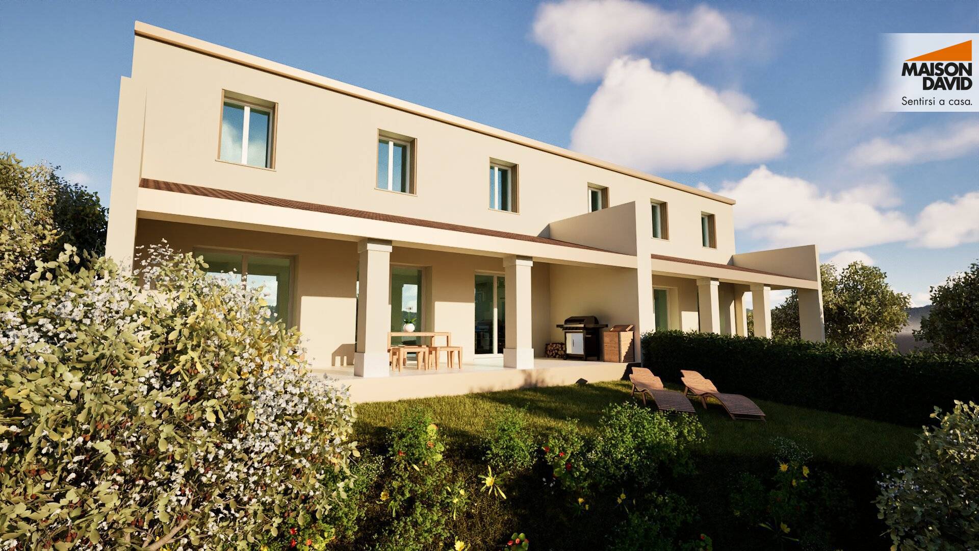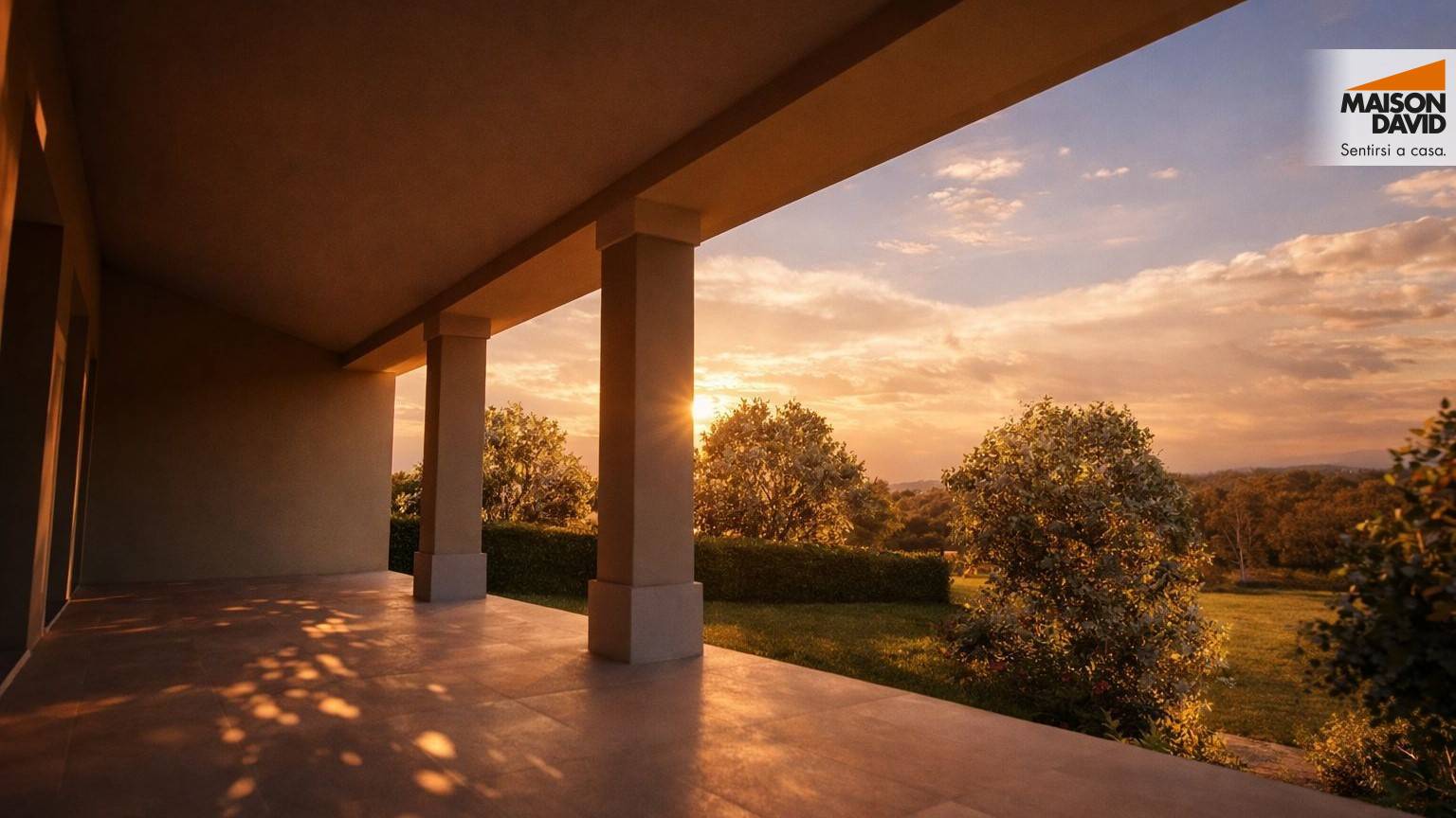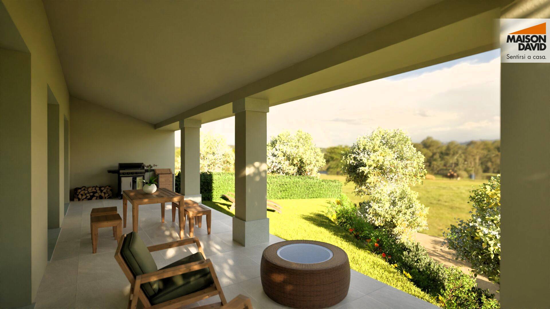 Il portico diventa il prolungamento ideale del soggiorno, un salotto all'aria aperta dove rallentare e lasciarsi conquistare da una vista panoramica aperta.