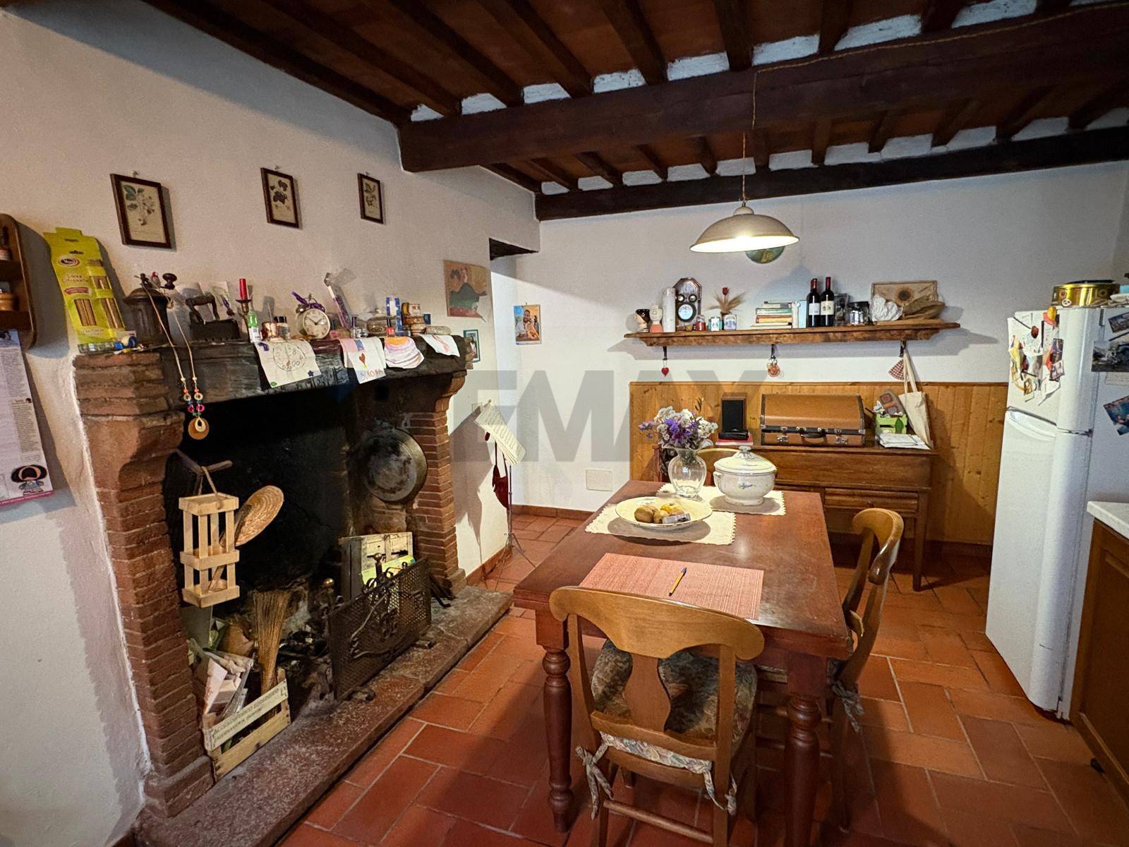 Sullo stesso livello, con accesso indipendente, presente una cantina dove si trova la caldaia a GPL. Al primo piano, collegato da scala interna, si sviluppa la zona giorno principale, composta da una spaziosa cucina con camino tradizionale e lavandino in pietra, che si apre su una terrazza panoramica con vista sulle colline.