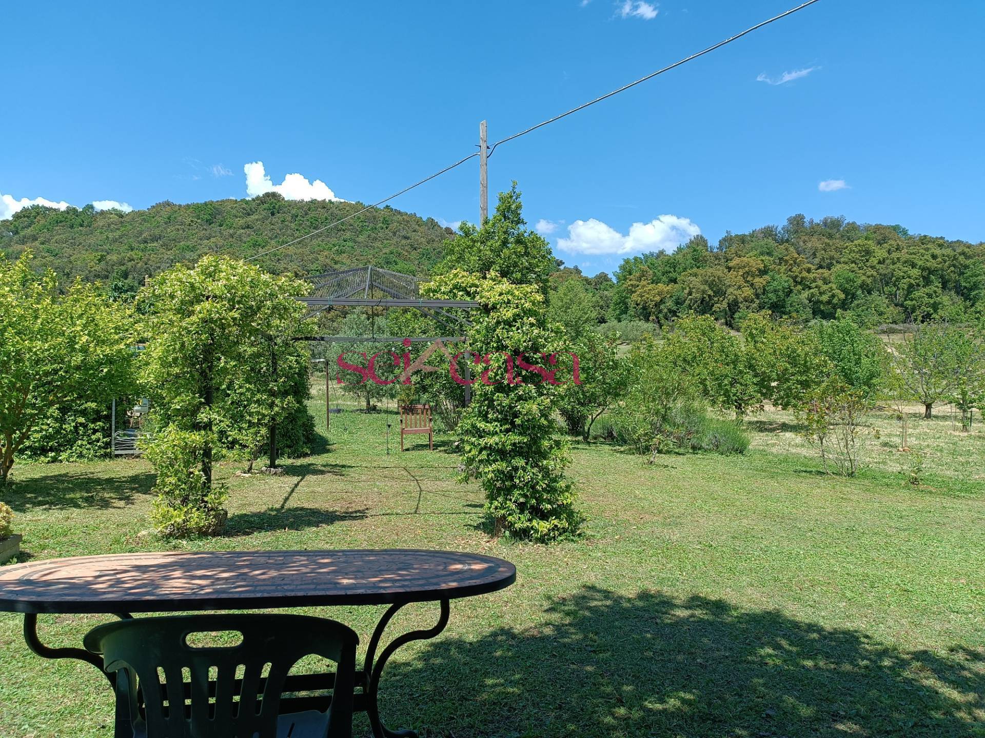Vendesi ampia porzione di 250 mq ristrutturata composta di tre alloggi, un grande giardino, un parco, un frutteto, oliveto di 200 piante e un bosco di macchia mediterranea per un totale di 5 ettari, un magazzino/deposito di 100 mq e una cantina di 16 mq. Completano la propriet un trattore, rendita Pac, vari attrezzi agricoli e loccorrente per la raccolta delle olive.