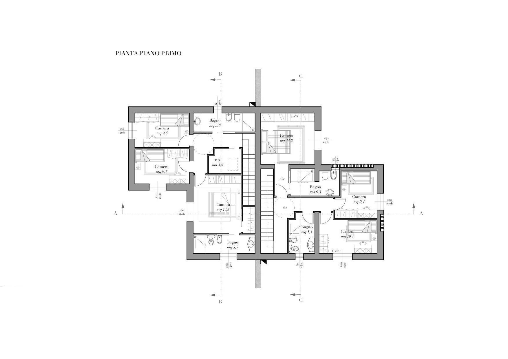 Entrambe sono disposte su due livelli fuori terra con vano tecnico seminterrato e sono composte al piano terra da cucina/sala da pranzo, ripostiglio, bagno e ampio soggiorno con la possibilit di realizzare un camino; al piano primo trovano spazio una camera matrimoniale con bagno, due camerette e un bagno; nel seminterrato troviamo il locale tecnico per gli impianti tecnici e la lavanderia.