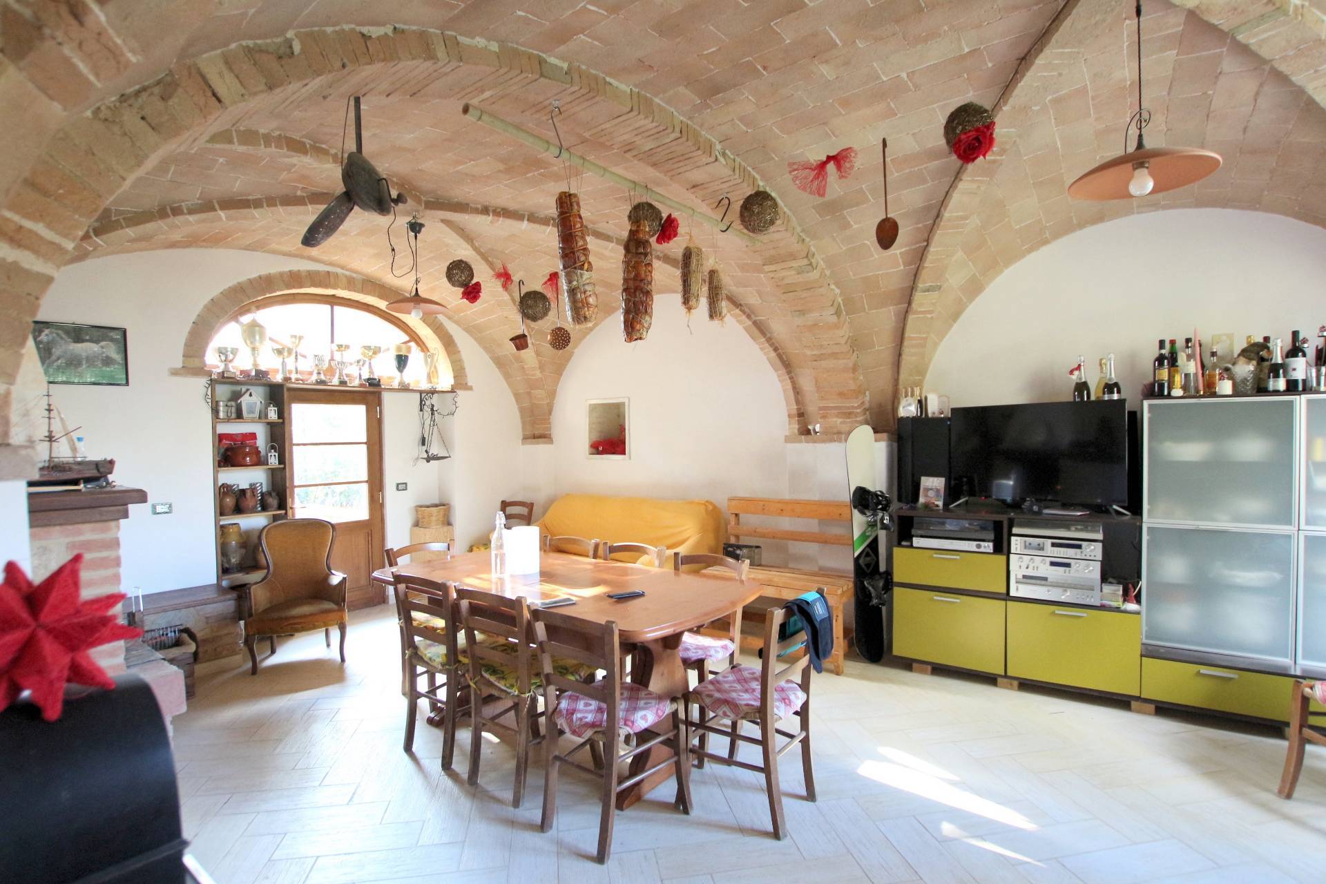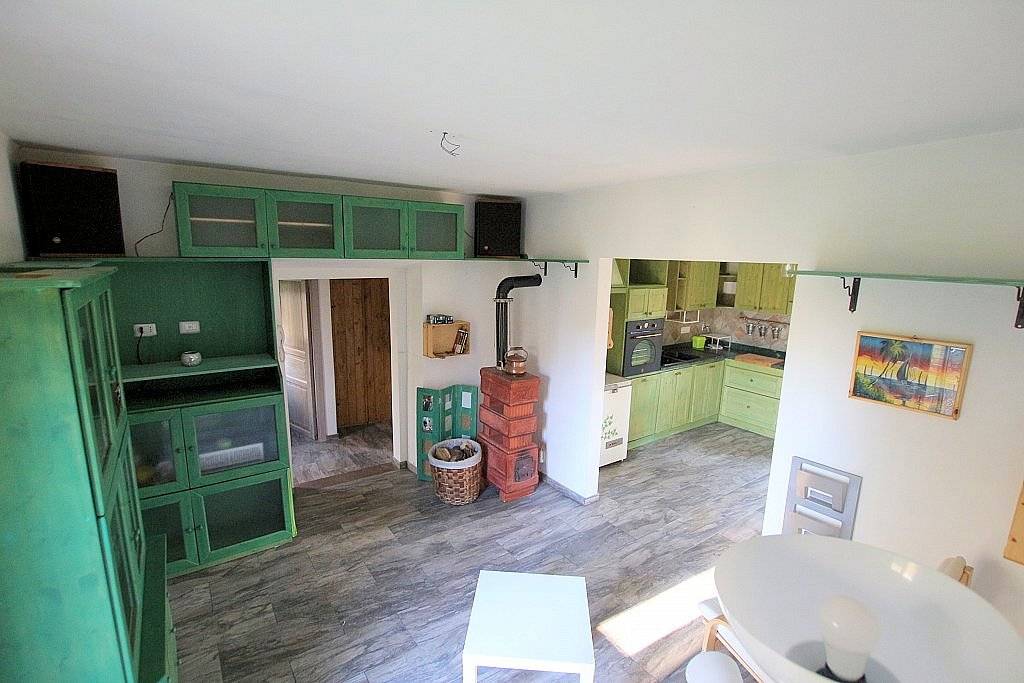 Si compone di: un ampio portico di 20,10 mq dove possibile consumare pasti all'aperto, dal quale si accede a cucina, ripostiglio, bagno, un'ampia zona giorno rustica con volte a crociera; sempre al piano terra, con accesso indipendente possibile trovare il locale tecnico con caldaia a pellet (riscaldamento autonomo) Le scale esterne portano al primo piano che composto da: disimpegno, bagno, camera da letto, ripostiglio e una zona open space con cucina e soggiorno.