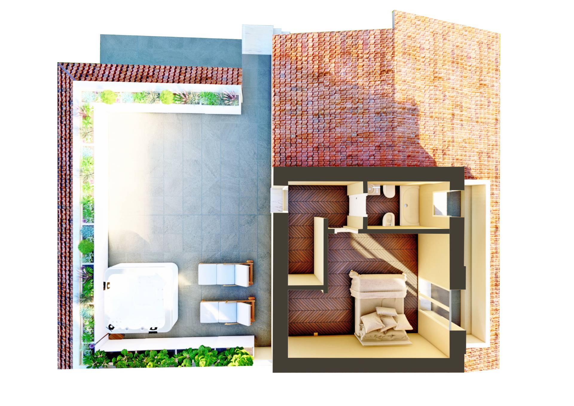 Dal soggiorno si accede attraverso una scala interna di marmo ad una camera padronale al piano primo con un bagno ed un terrazzino.