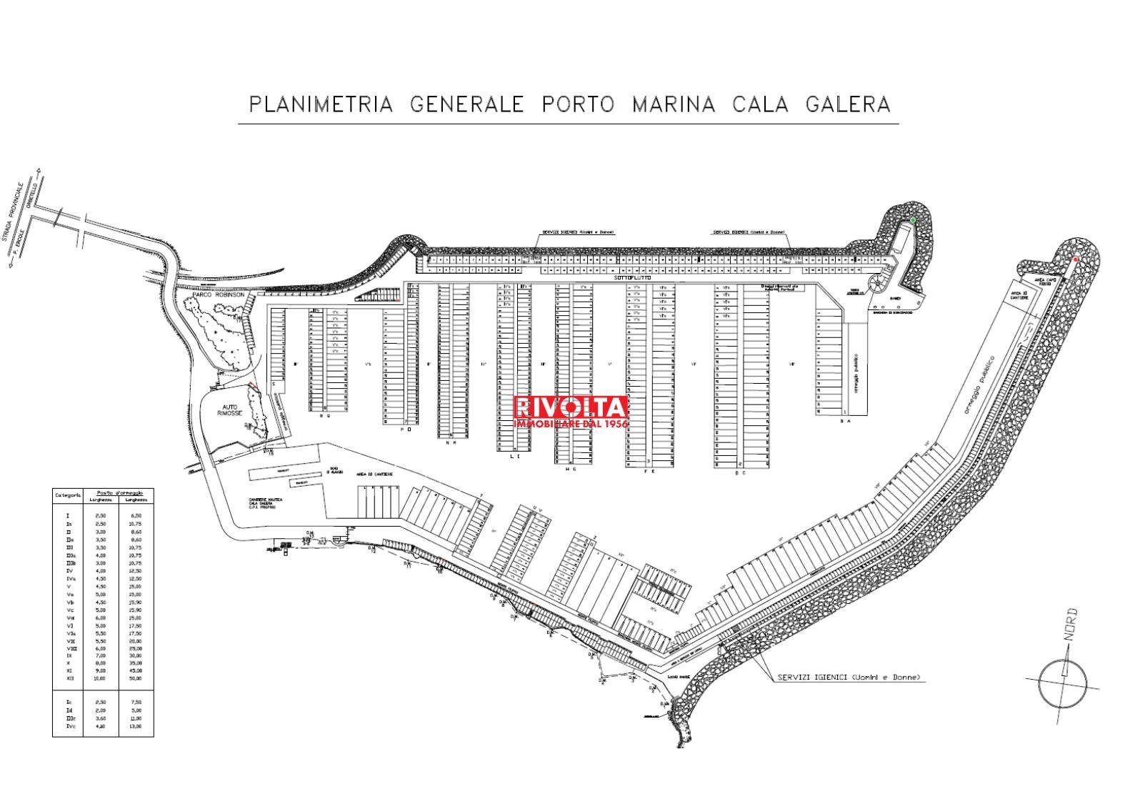 Rivolta vende - Argentario/Porto di Cala Galera - Posto Barca di grandi dimensioni, categoria VIII, metri 6,00 (larghezza) x 25,00 (lunghezza), piedi 19,68 (larghezza) x 82,02 (lunghezza), posto auto e box auto. Prezzo richiesto ? 390.000 trattabili Disponibile da subito Ottima opportunit anche uso investimento da mettere a reddito.