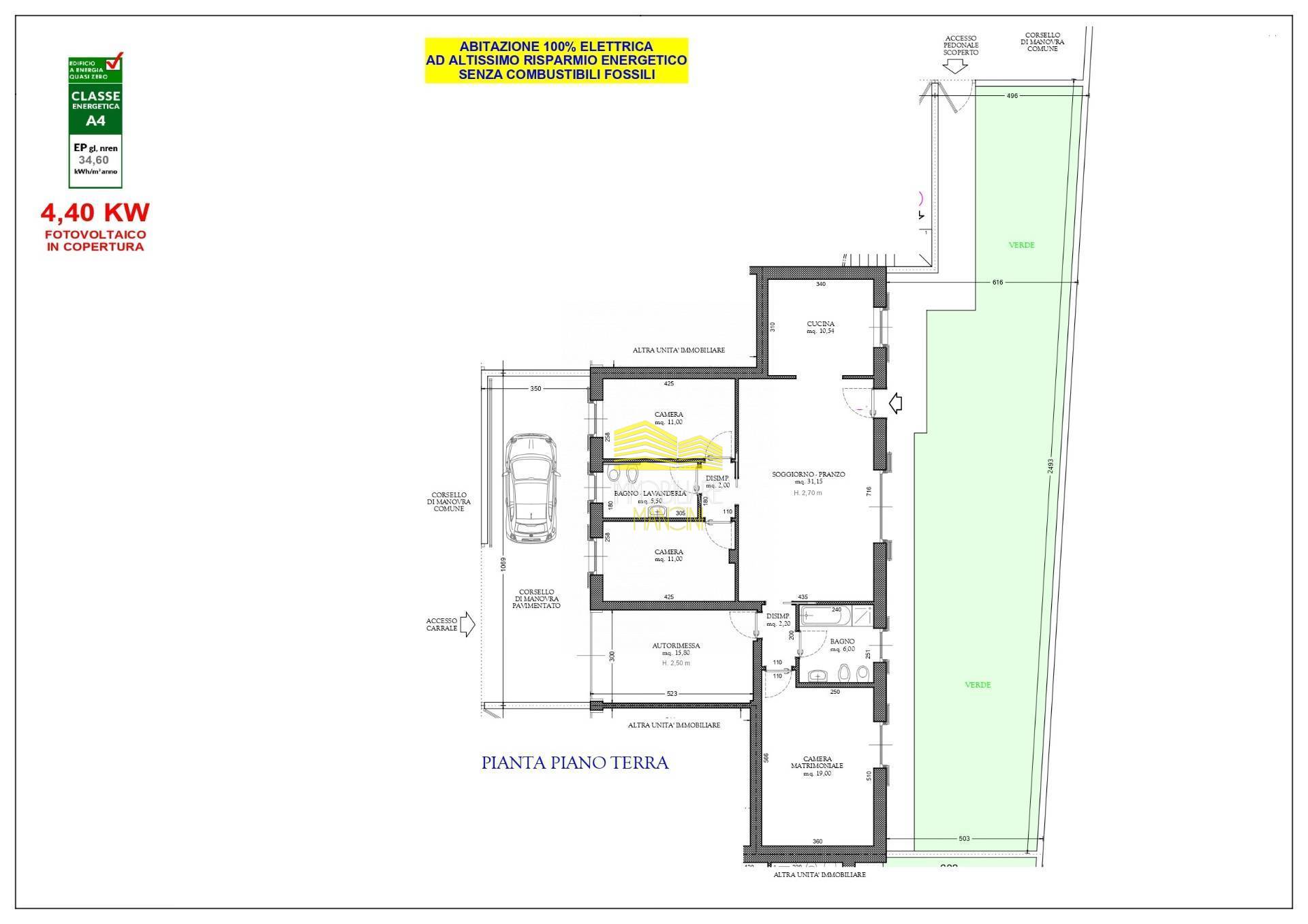 Accessoriata di impianto fotovoltaico ampliabile, pompa di calore gi fornita con predisposizione climatizzazione estiva, riscaldamento a pavimento, predisposizione sistema di allarme.