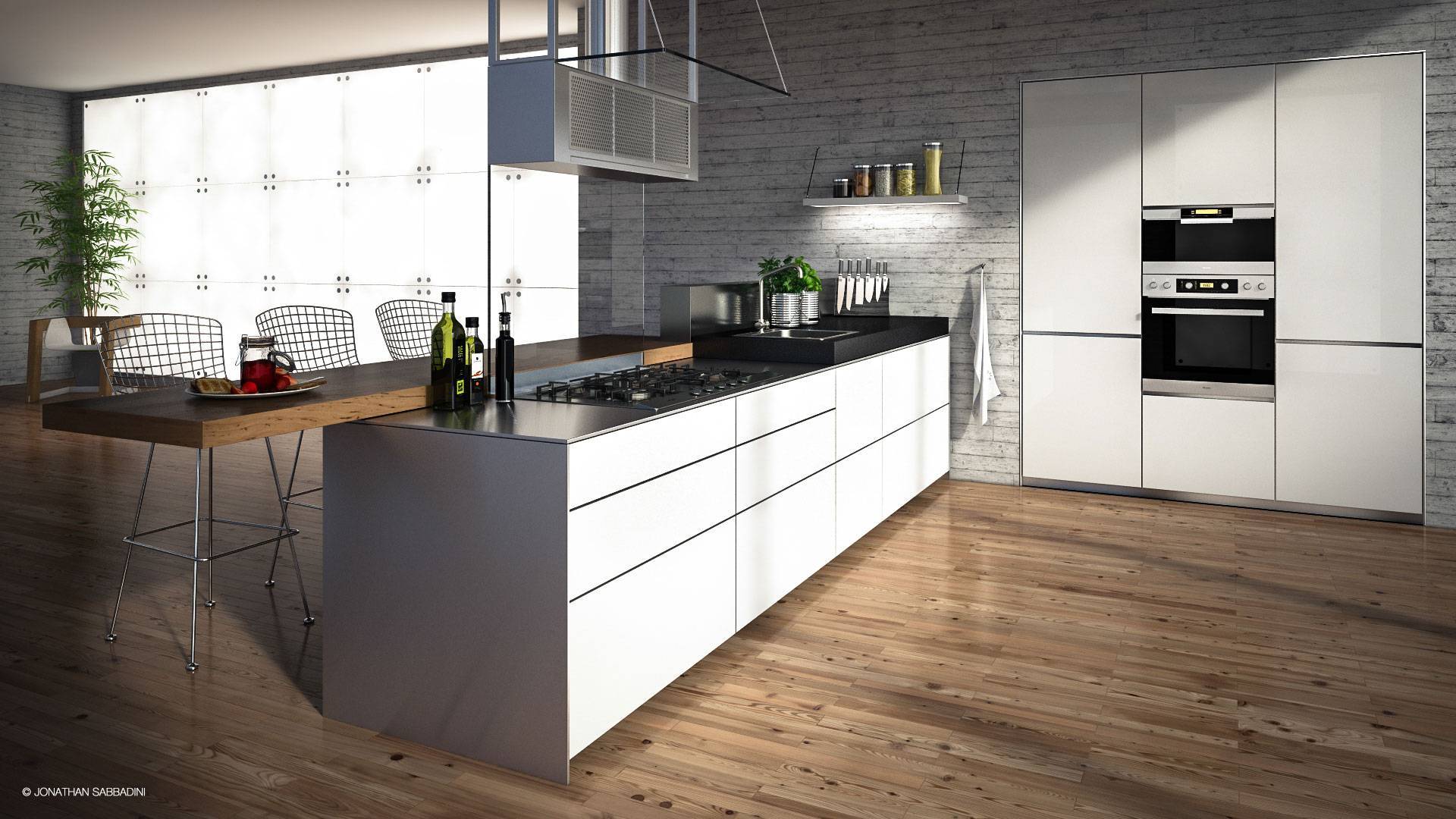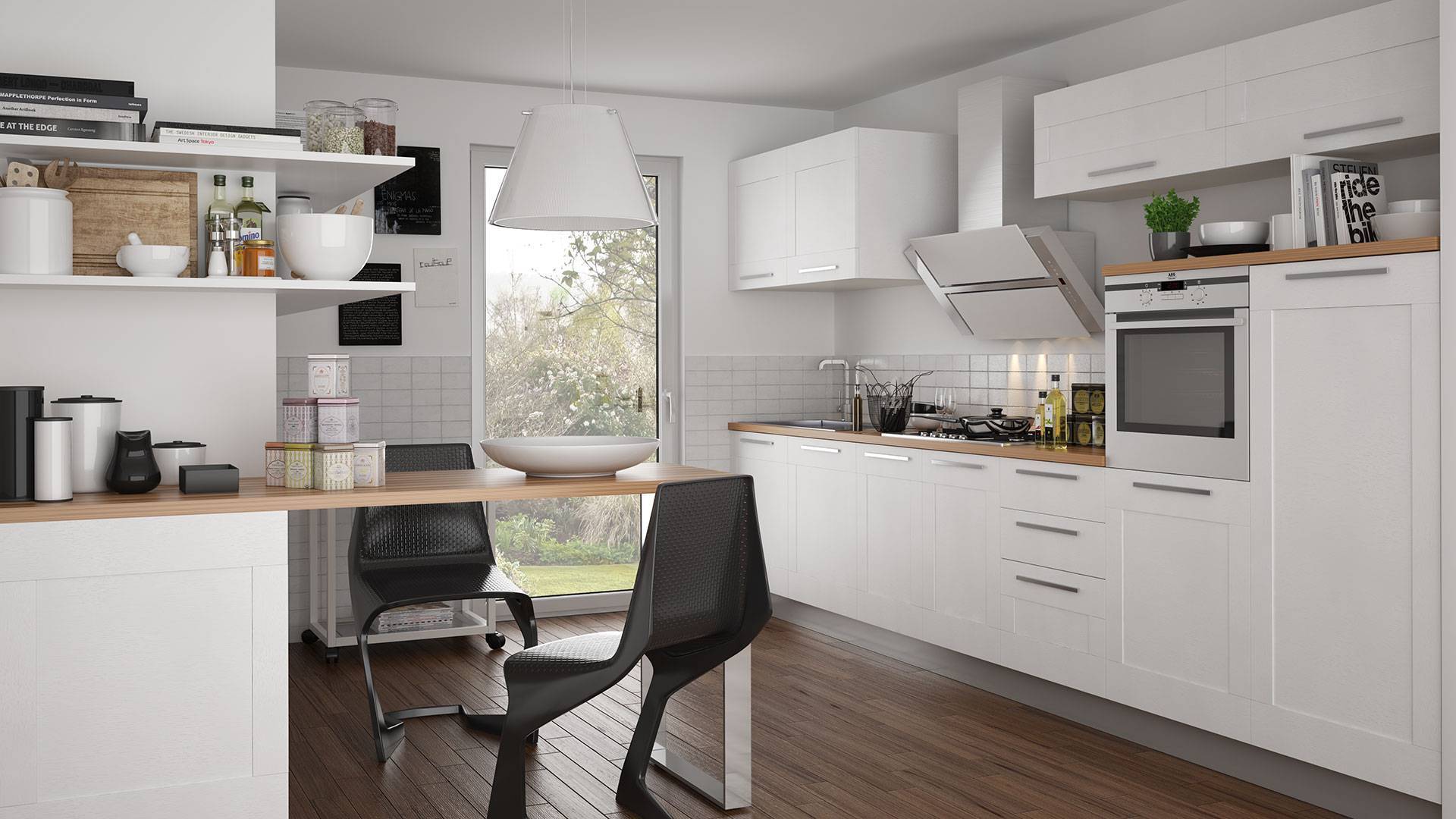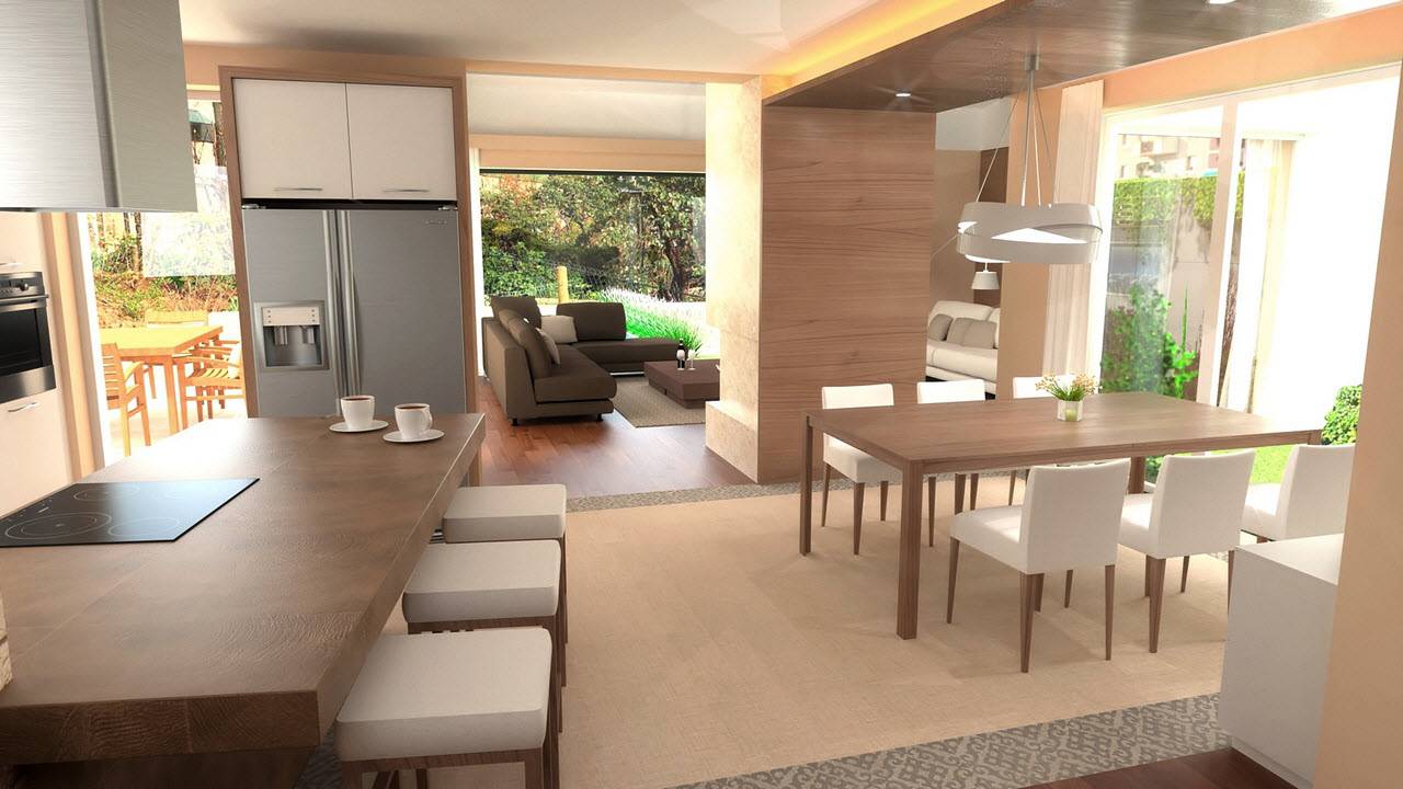 L'ampia cucina, si apre verso un giardino privato perfetto per godersi momenti di relax all'aperto.