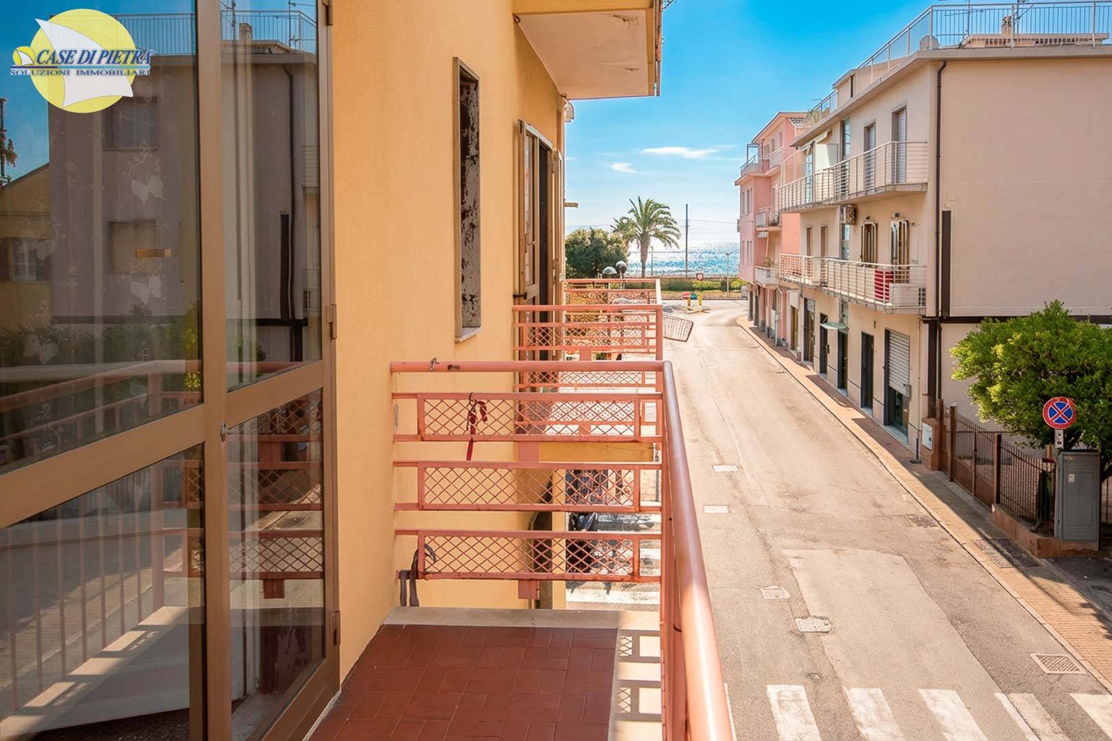 La soluzione si compone di ingresso su ampio disimpegno, cucina abitabile, grande soggiorno con doppia aria e accesso al balcone angolare con vista mare, due camere matrimoniali di cui una con terrazzino e bagno finestrato.