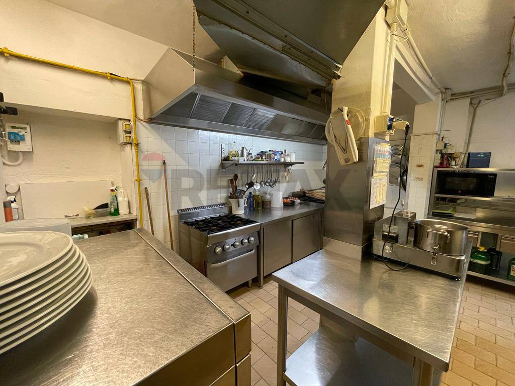 Locale di circa 350 mq composto da: zona adibita a bar, piccolo magazzino e spogliatoio, servizi, ampio salone utilizzato per la ristorazione (circa 90 posti) e cucina completa in cui presente la zona pizzeria.