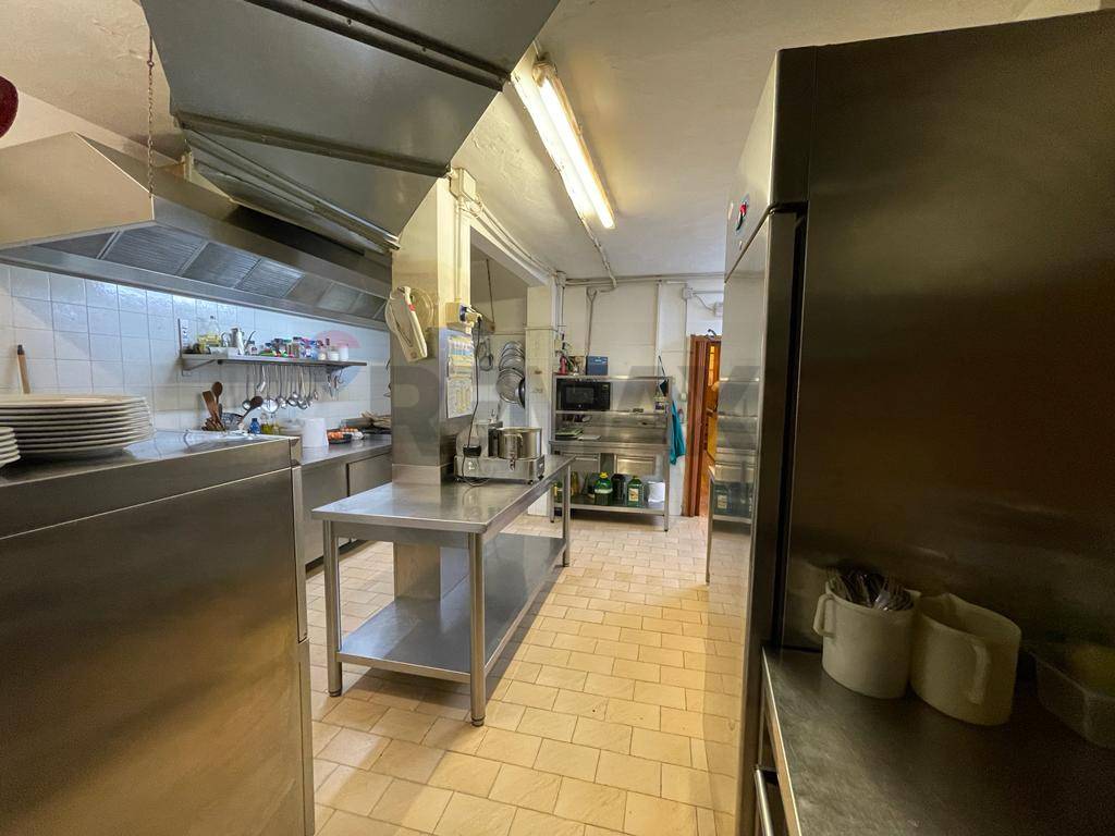 La cucina completamente attrezzata di tutti gli elettrodomestici necessari per lo svolgimento dell'attivit tra cui: forno a legna, spianatrici, affettatrice ,impastatrice ,cassettiere, due stufe una a 6 fuochi e l'altra a 4 fuochi, forno elettrico, lavastoviglie, acquaio, pensili e frigoriferi a colonna.
