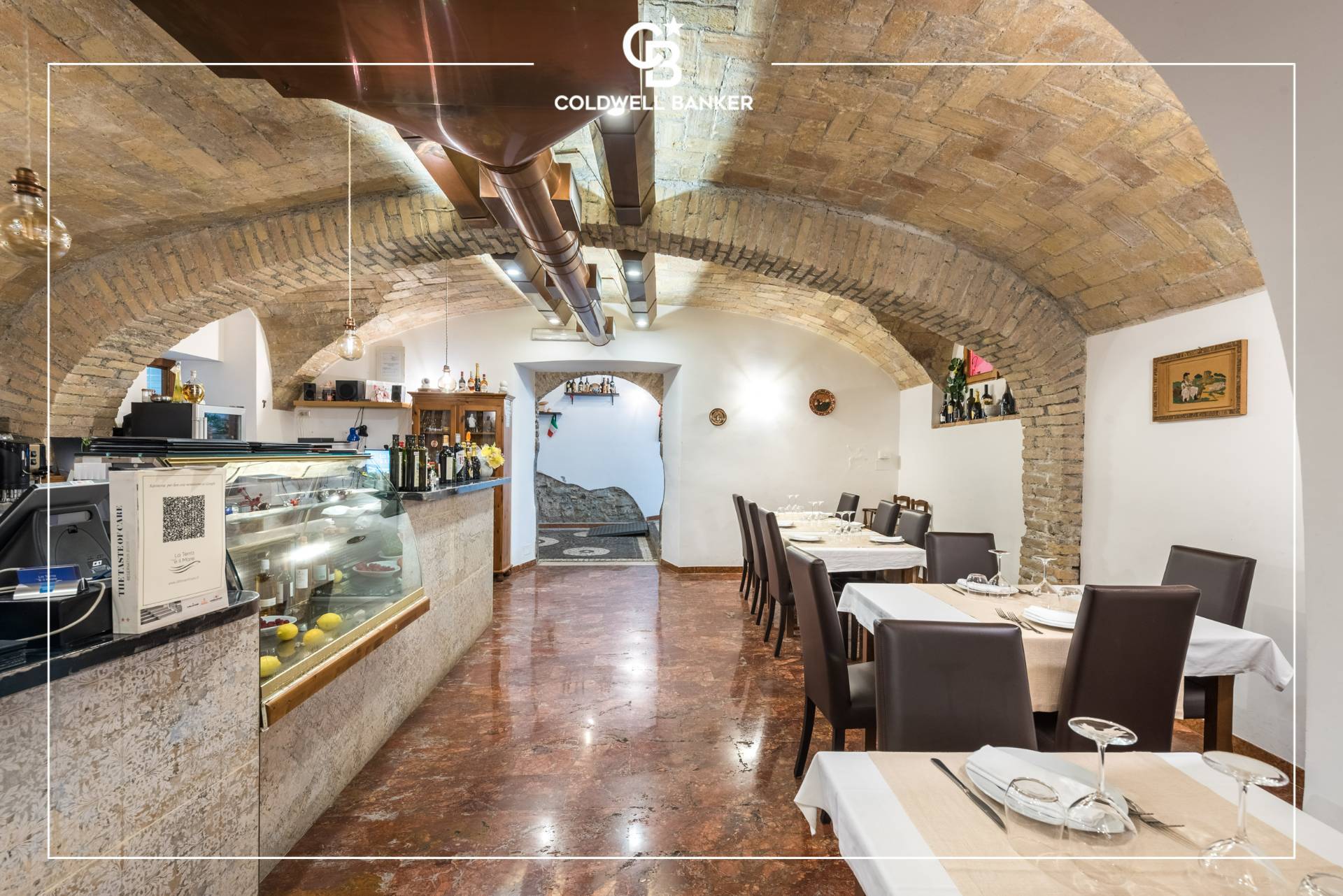 Il locale si trova al piano terra di un edificio di tre piani con una superficie totale di circa 200 metri quadri, il ristorante offre ampi spazi interni e una vetrina su strada che garantisce una buona visibilit.