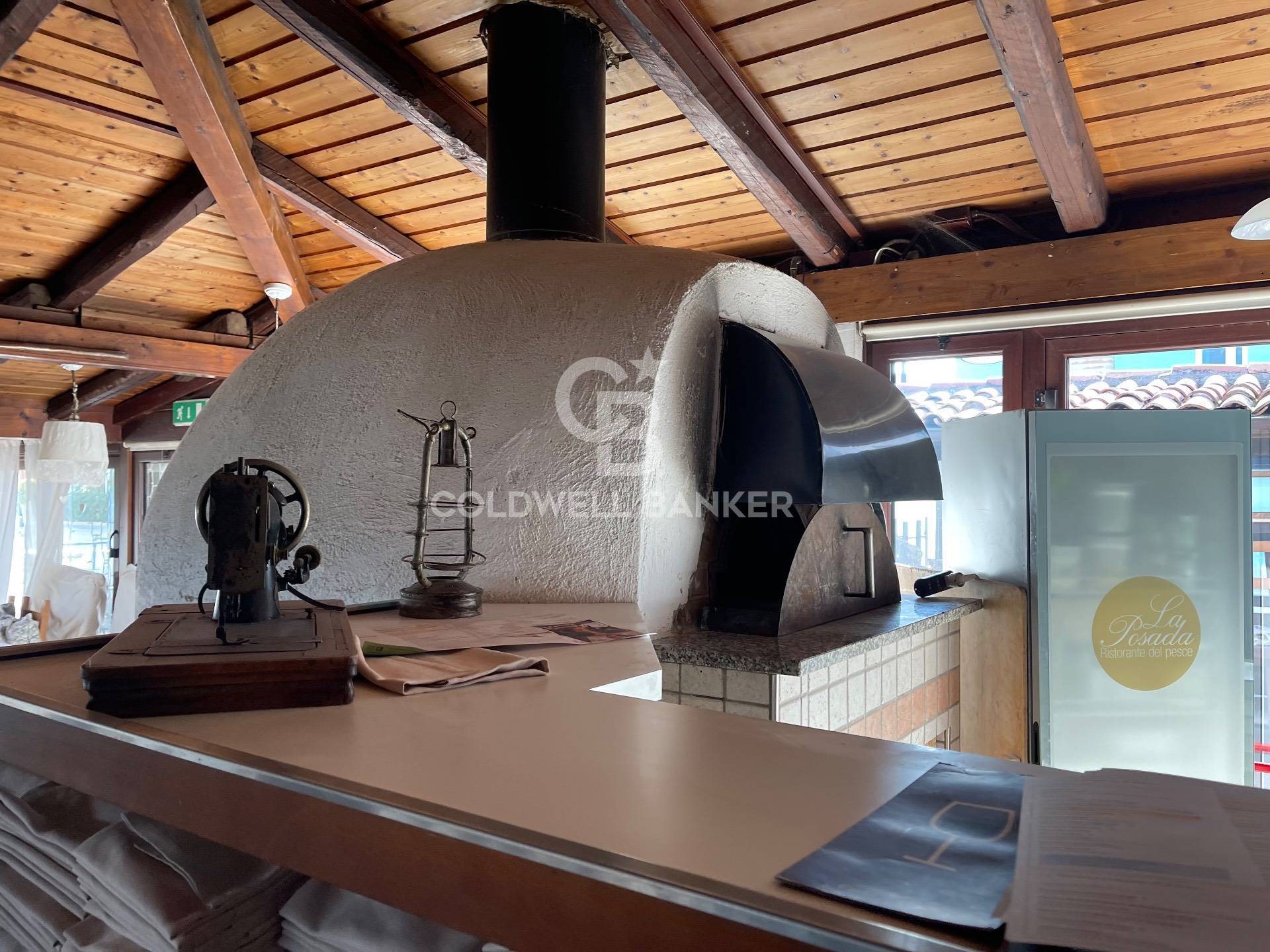 Il locale con grandi vetrate e travi a vista si sviluppa al piano terra con una superficie di 480,1 mq oltre alla corte esterna di 101,8 mq e al pergolato di 39,8 mq. L'immobile che pu accogliere fino a trecento coperti dispone di canna fumaria, camino e forno a legna.