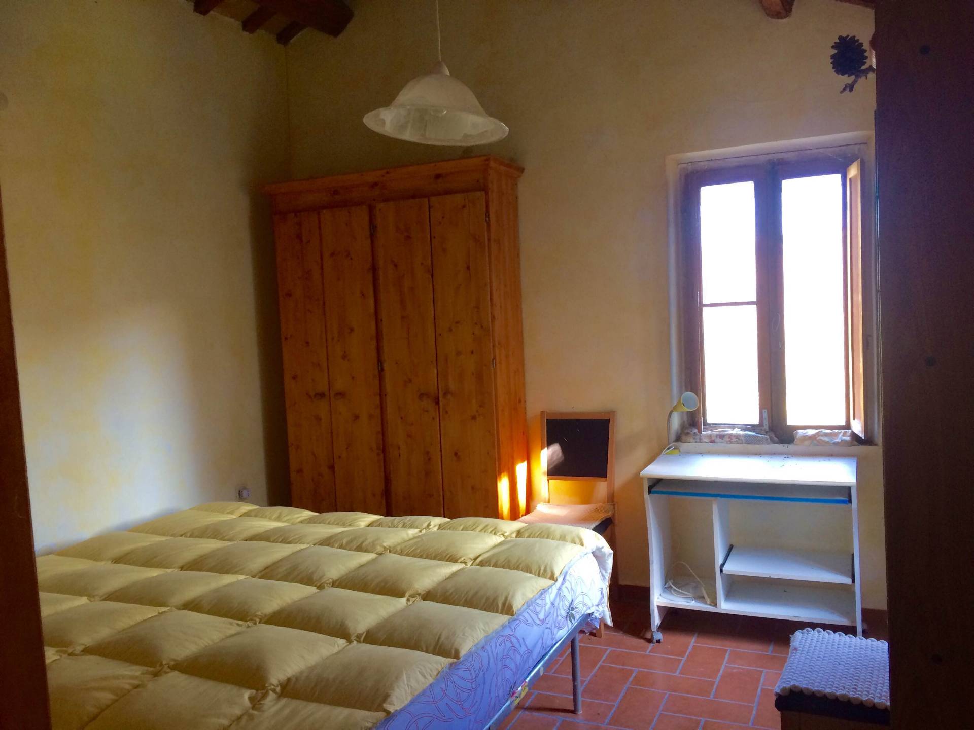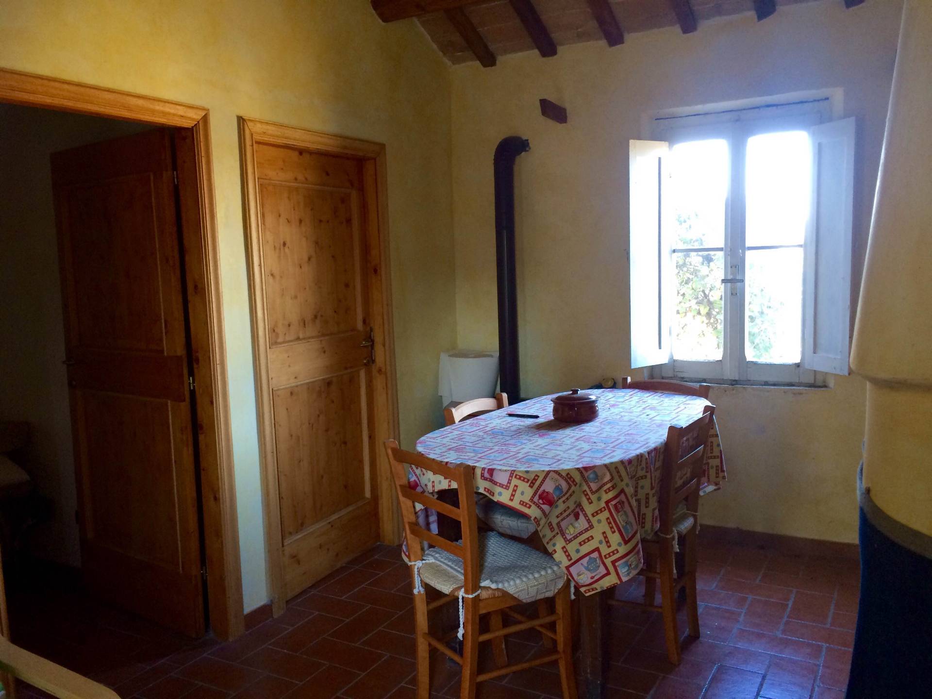 Sviluppato su due livelli per complessivi 130 mq e rimessa agricola di 50 mq; piano terra adibito a stalle e rimessa attrezzi, tramite la tipica scala esterna marchigiana, arriviamo al piano primo composto da soggiorno con camino, cucina, bagno e due camere da letto, di cui una matrimoniale ed una doppia.