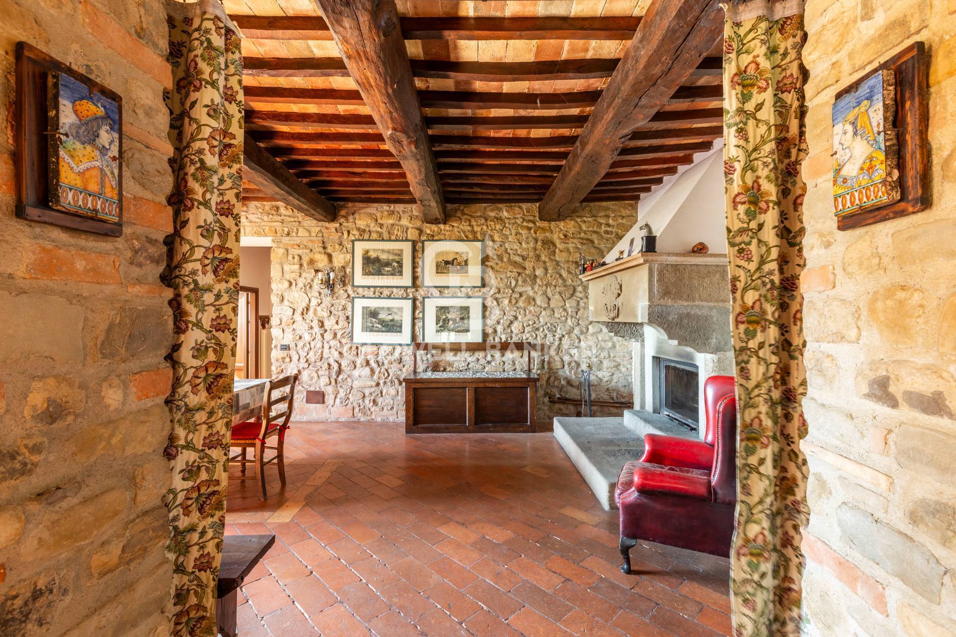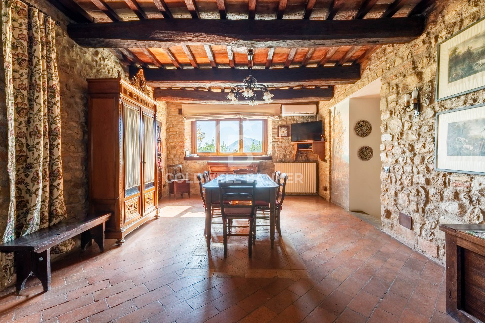 STATO E FINITURE Gli interni conservano con eleganza i tratti pi caratteristici della tradizione umbro-toscana: travi in legno a vista che attraversano ogni ambiente, pavimenti in cotto e murature in pietra nella zona giorno che raccontano il passato con calore.